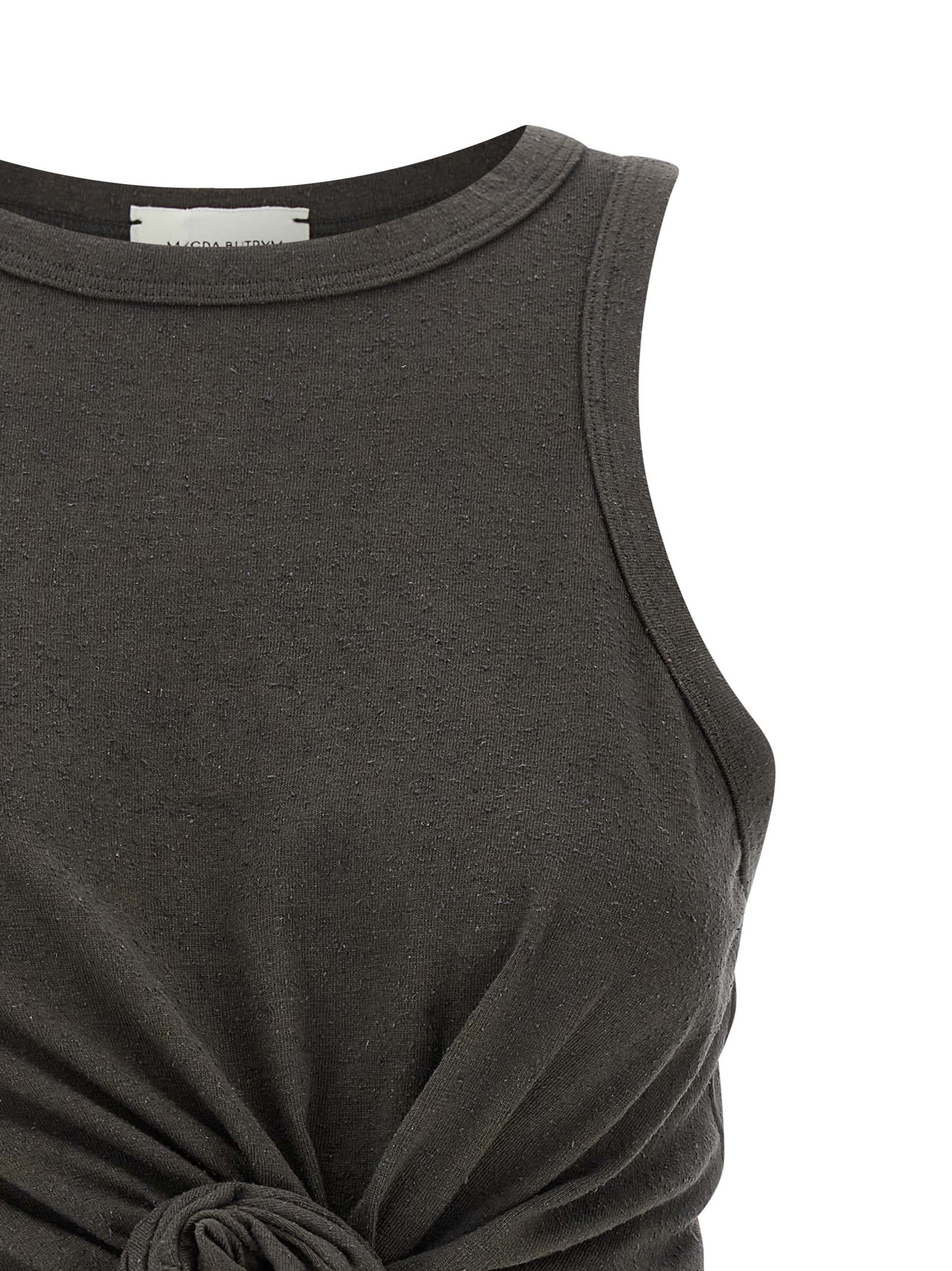 ’02’ cotton and silk tank top with raw texture, round neckline, front knot detail.
