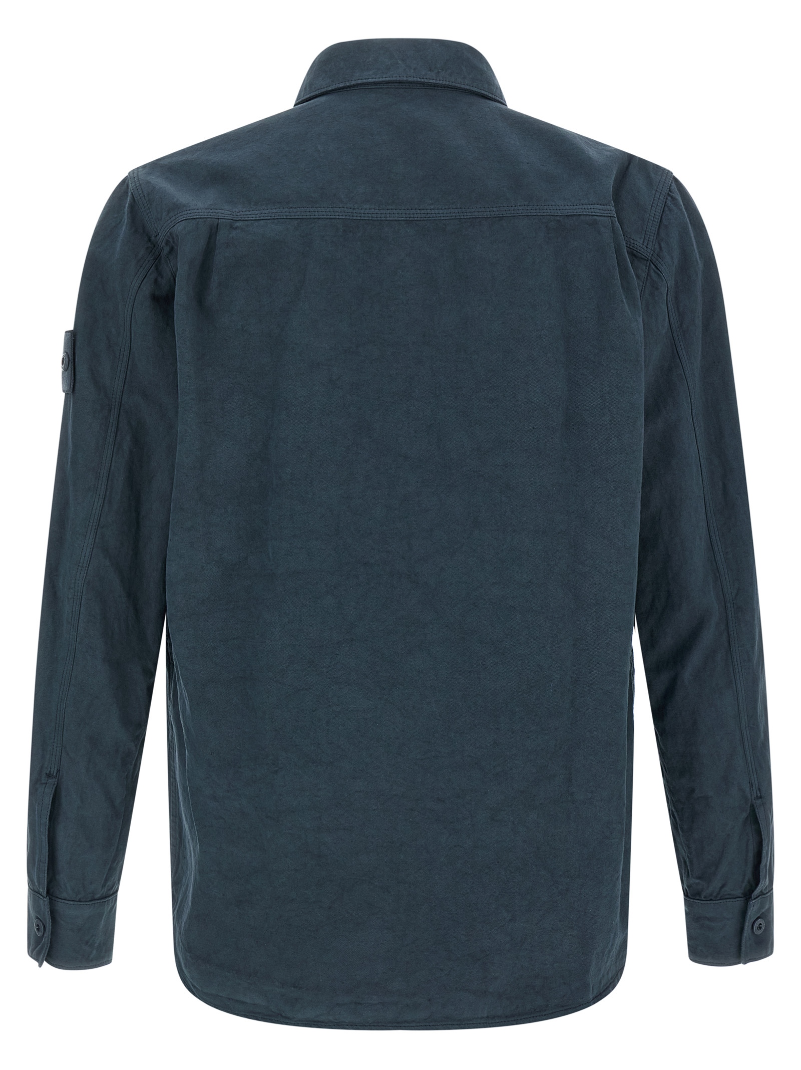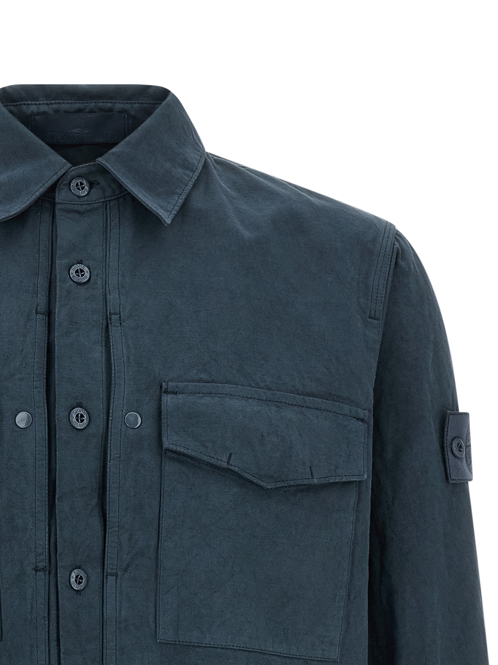 ‘1200012’ overshirt in garment-dyed cotton canvas and linen, front button closure, pockets, long sleeves with cuffs and tone-on-tone ‘Badge Stone Island Ghost’ appliqué.