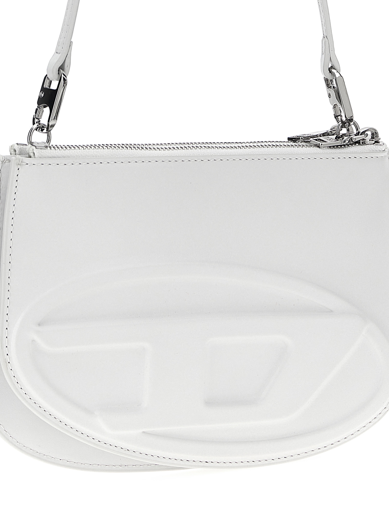 ‘1DR Twin’ shoulder bag in fine Italian leather, front embossed logo, zip closure, removable handle, adjustable and removable shoulder strap.