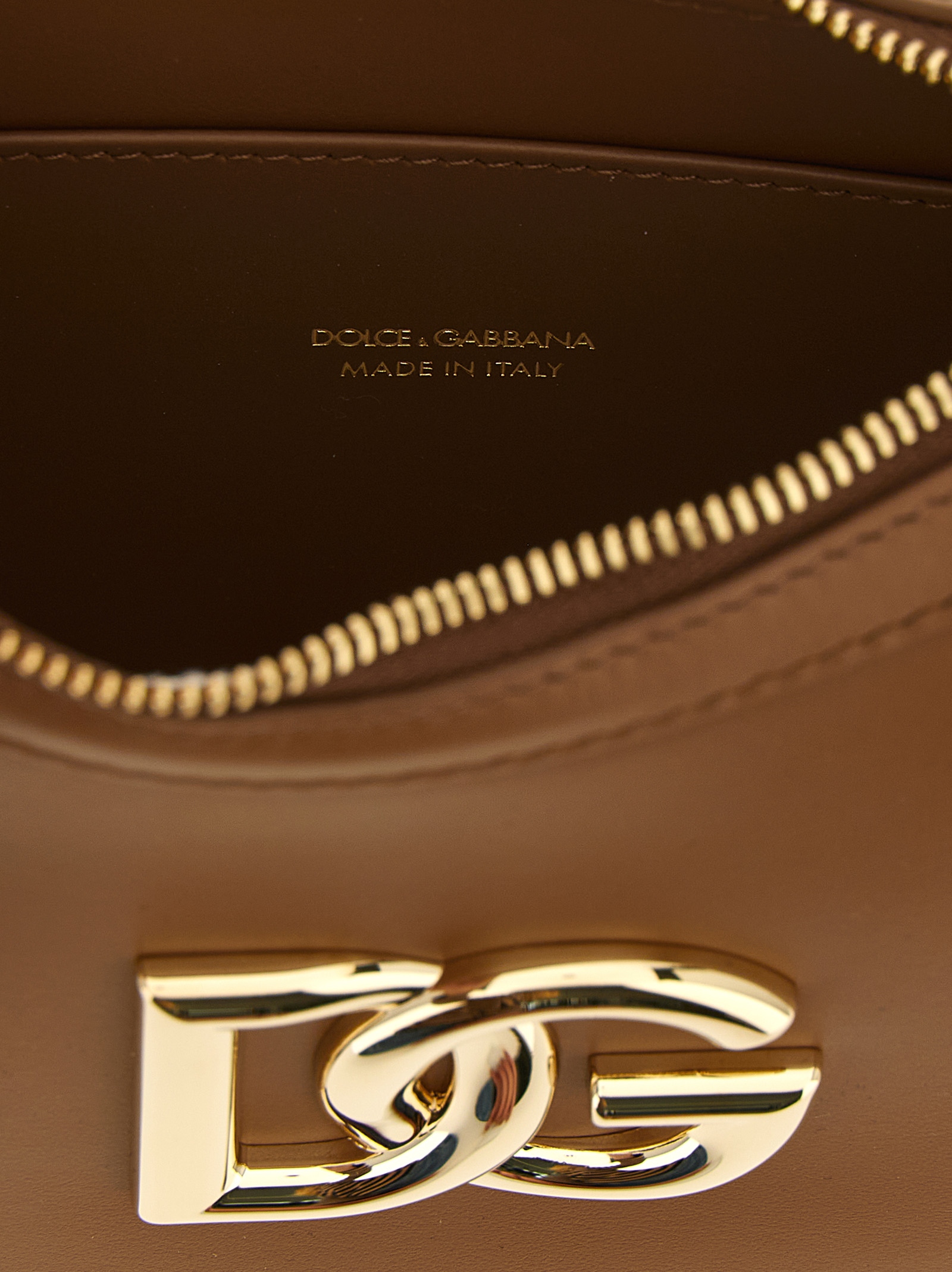 ‘3.5’ shoulder bag in calf leather, front metal logo, top zip closure, adjustable handle.