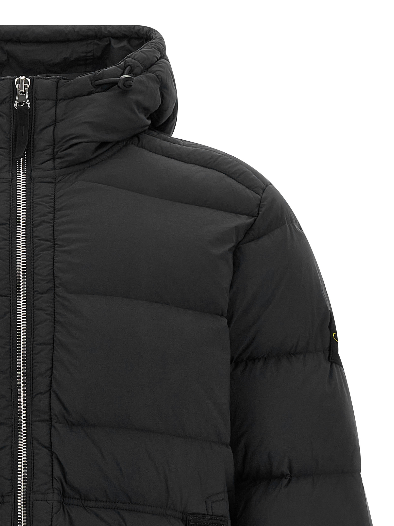 ‘4100040 Seamless Tunnel Nylon Down-TC’ down jacket in lightweight nylon fabric with a single stretch layer garment-dyed with quilted drip treatment, goose down padding, adjustable hood, front zip closure, pockets, long sleeves with elastic cuffs and logo badge, elastic hem.