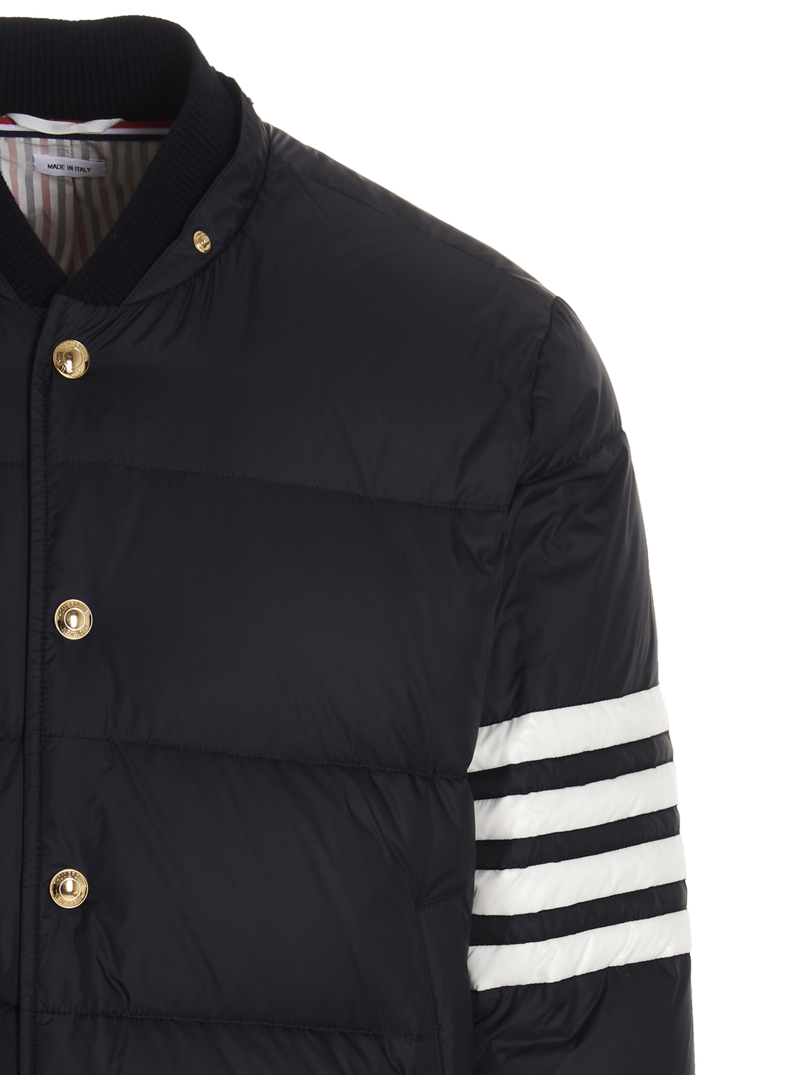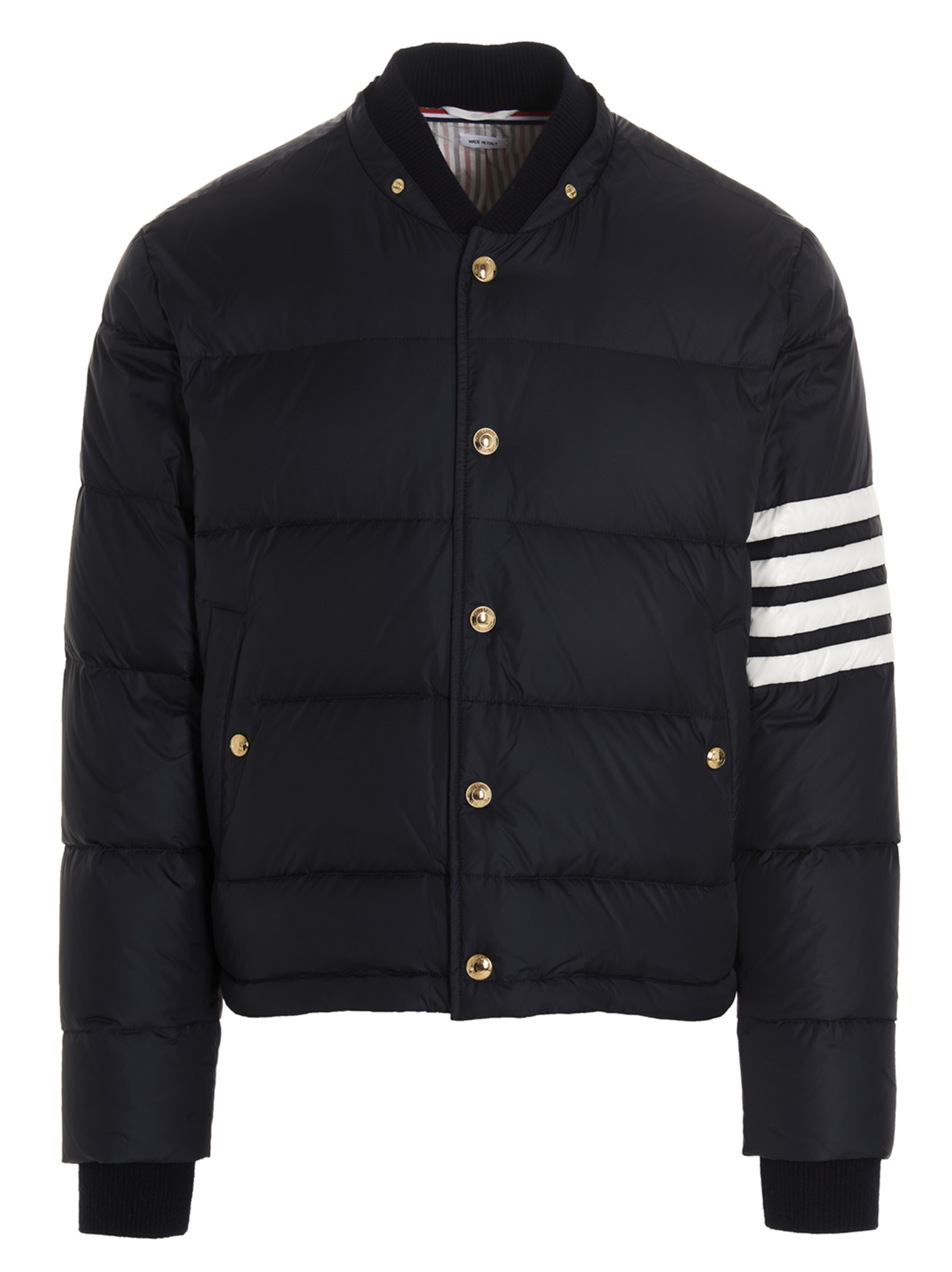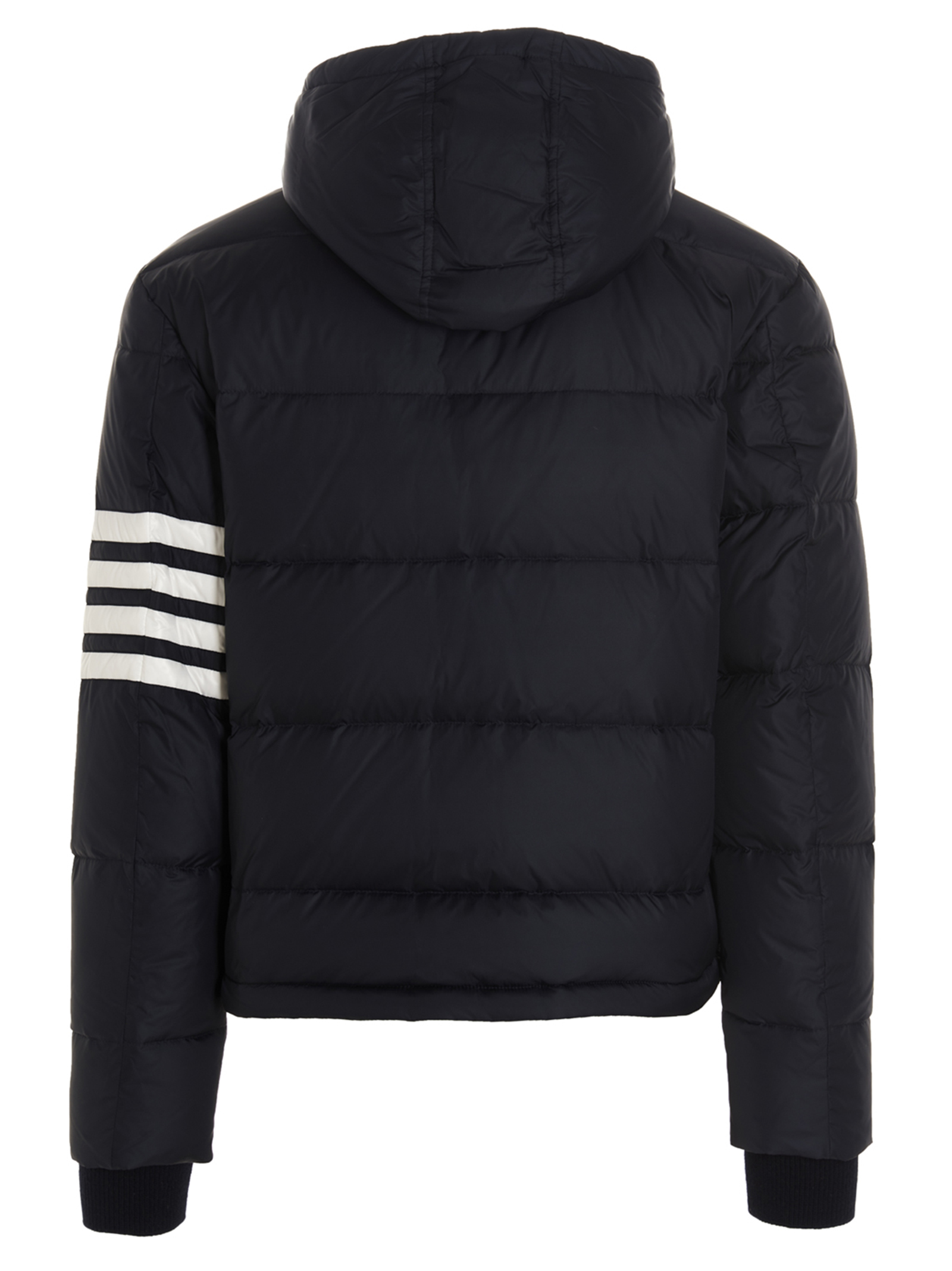 ‘4bar’ down jacket in tech fabric with a contrasting 4bar detailing on the sleeve, a removable hood and a button fastening.