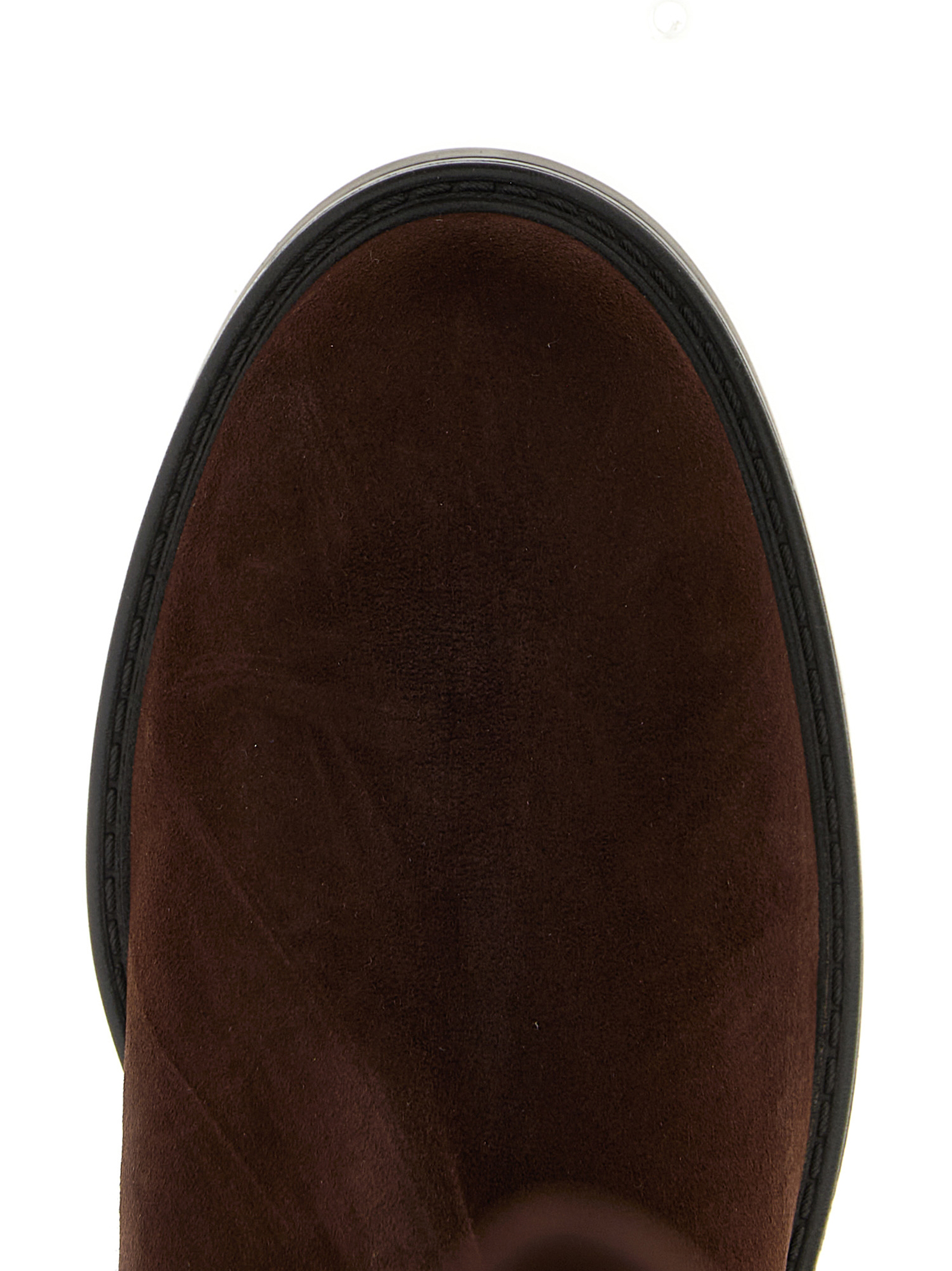 ‘5050 Clelia’ suede boots with tone-on-tone stretch gabardine back insert, cuissard model, rounded toe, rubber sole.