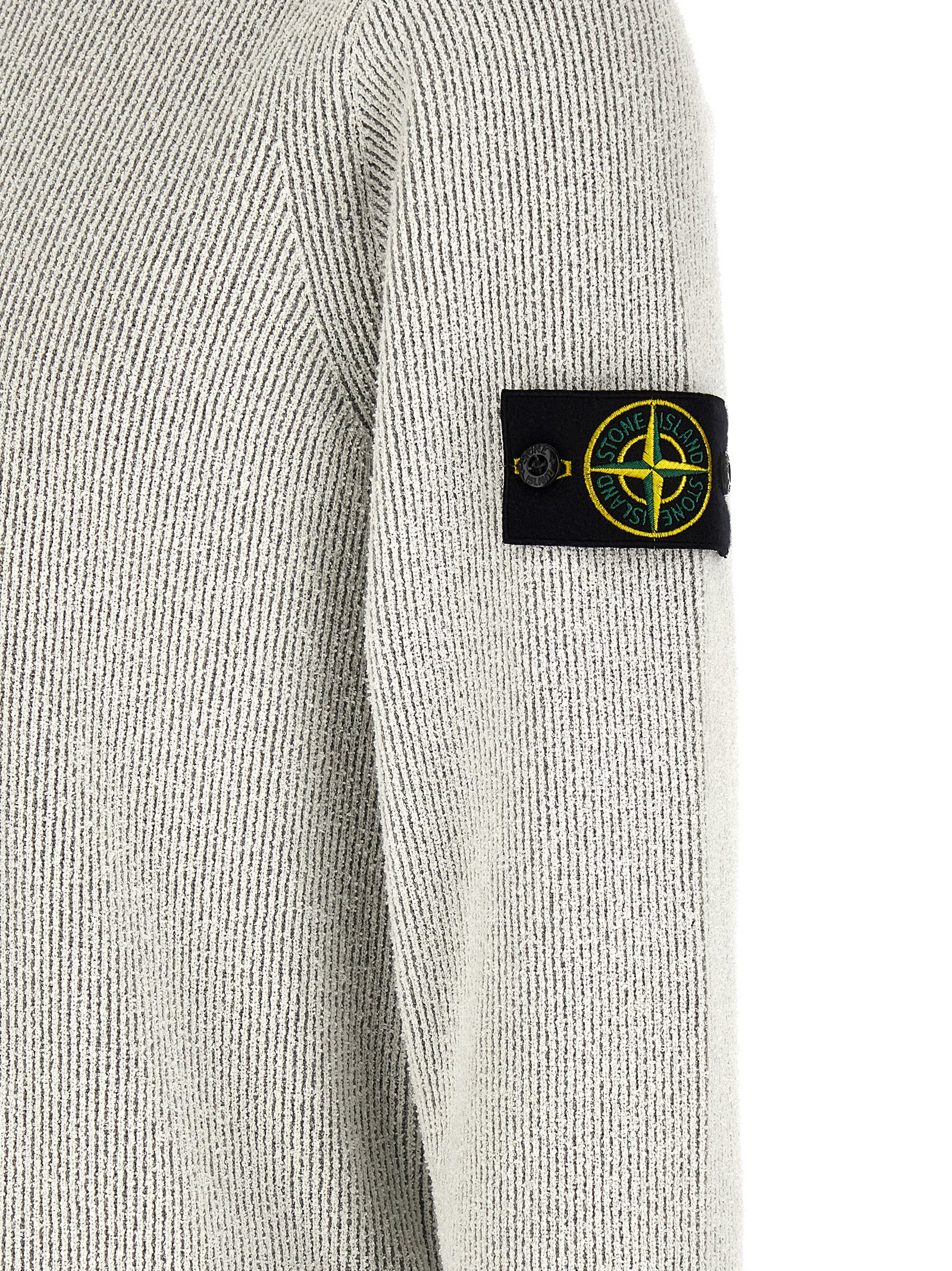 ‘5100033’ ribbed bouclé cotton sweater with fineness 14 fineness, crewneck, long raglan sleeves with cuffs and logo badge.