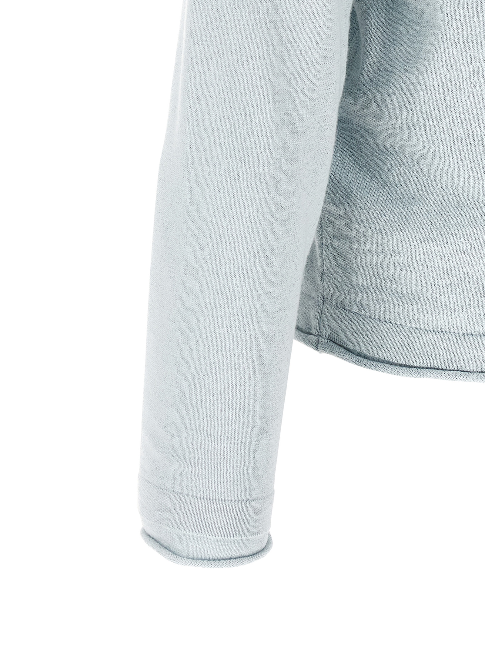 ‘5100052’ knit sweater in 14 fineness shaved cotton and nylon blend knit, crew neck, long sleeves with cuffs and logo badge appliqué.