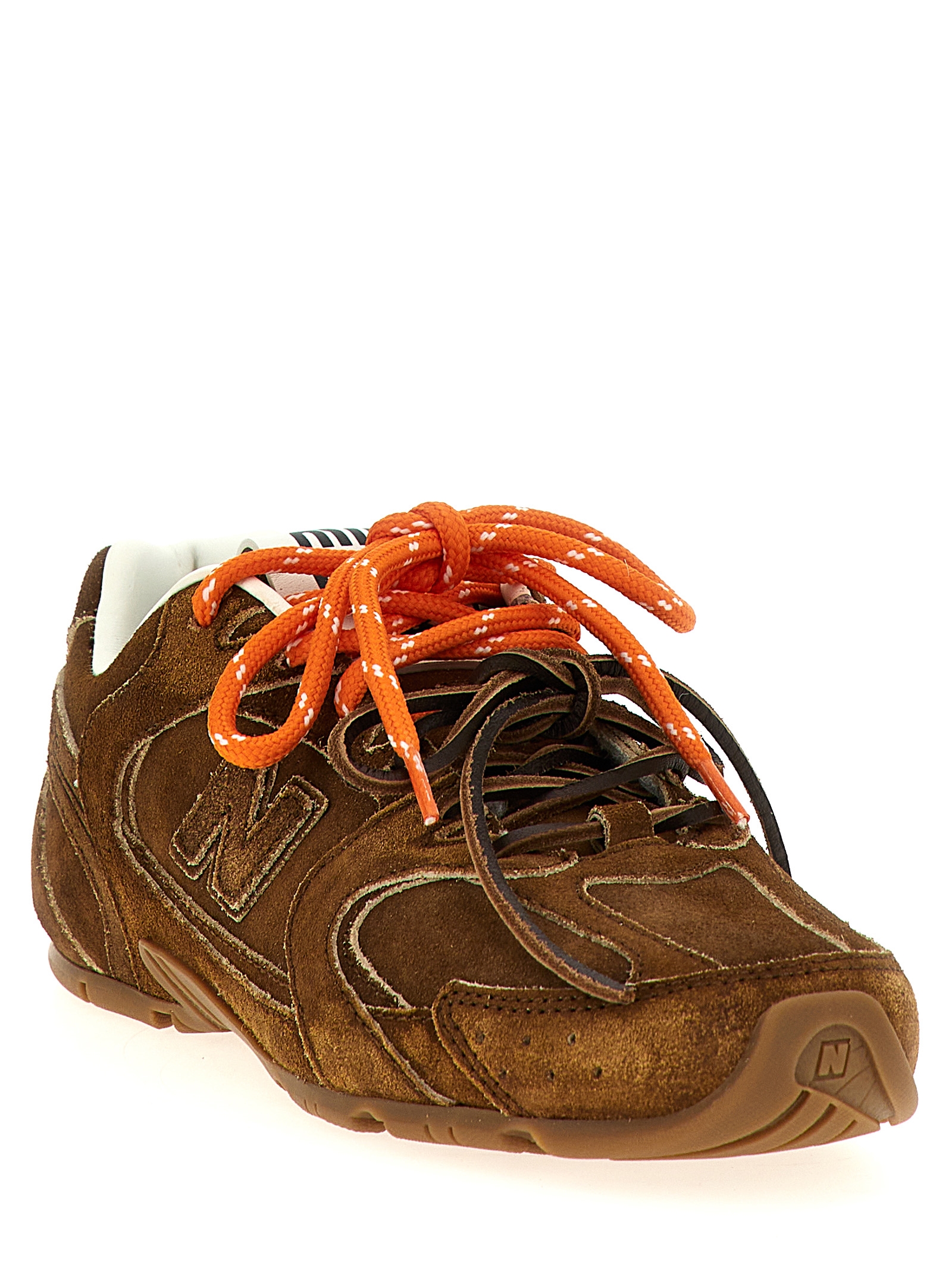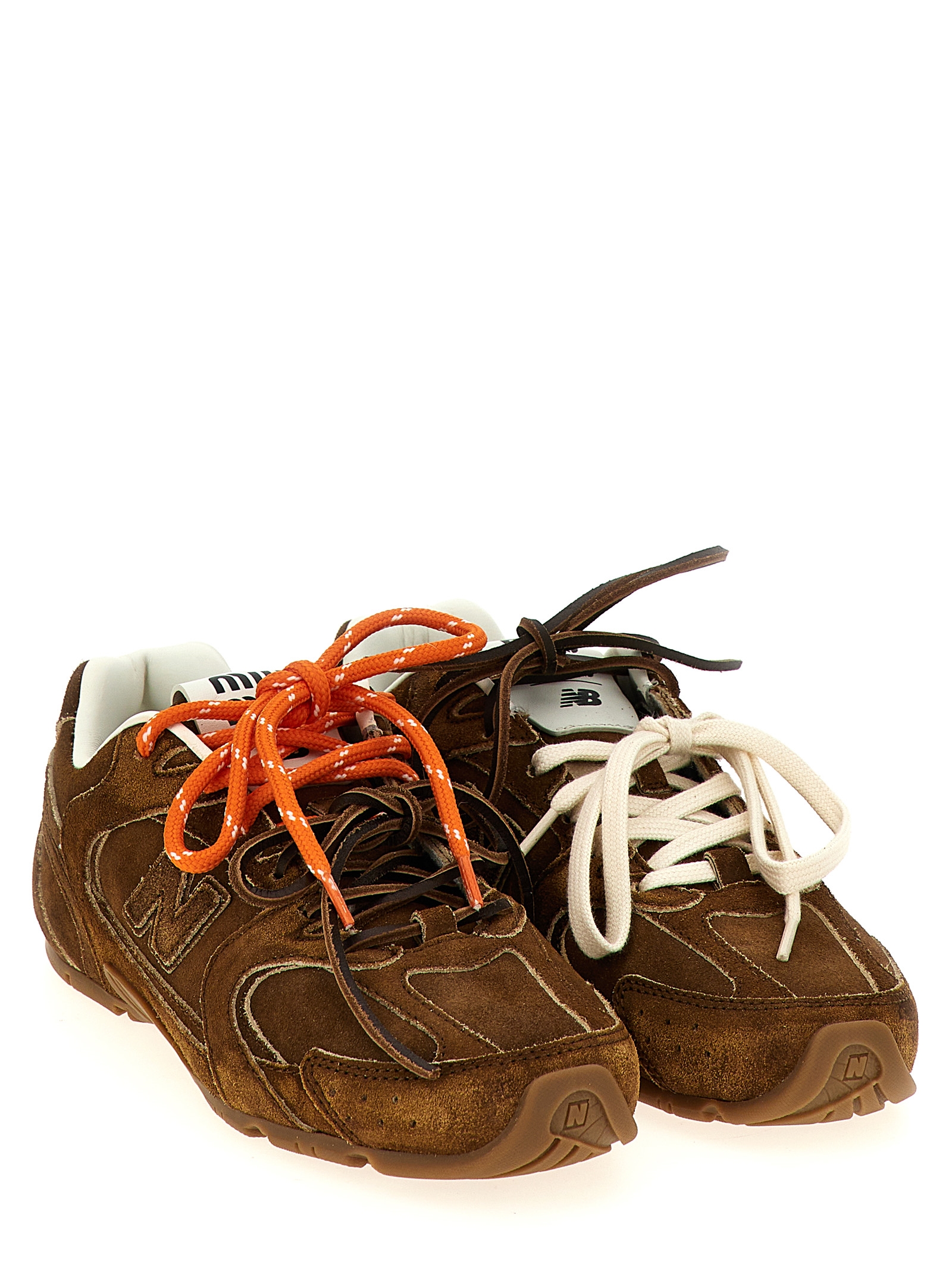 New Balance x Miu Miu ‘530 SL’ sneakers in suede and mesh, laces, rubber sole. Equipped with extra contrast laces.