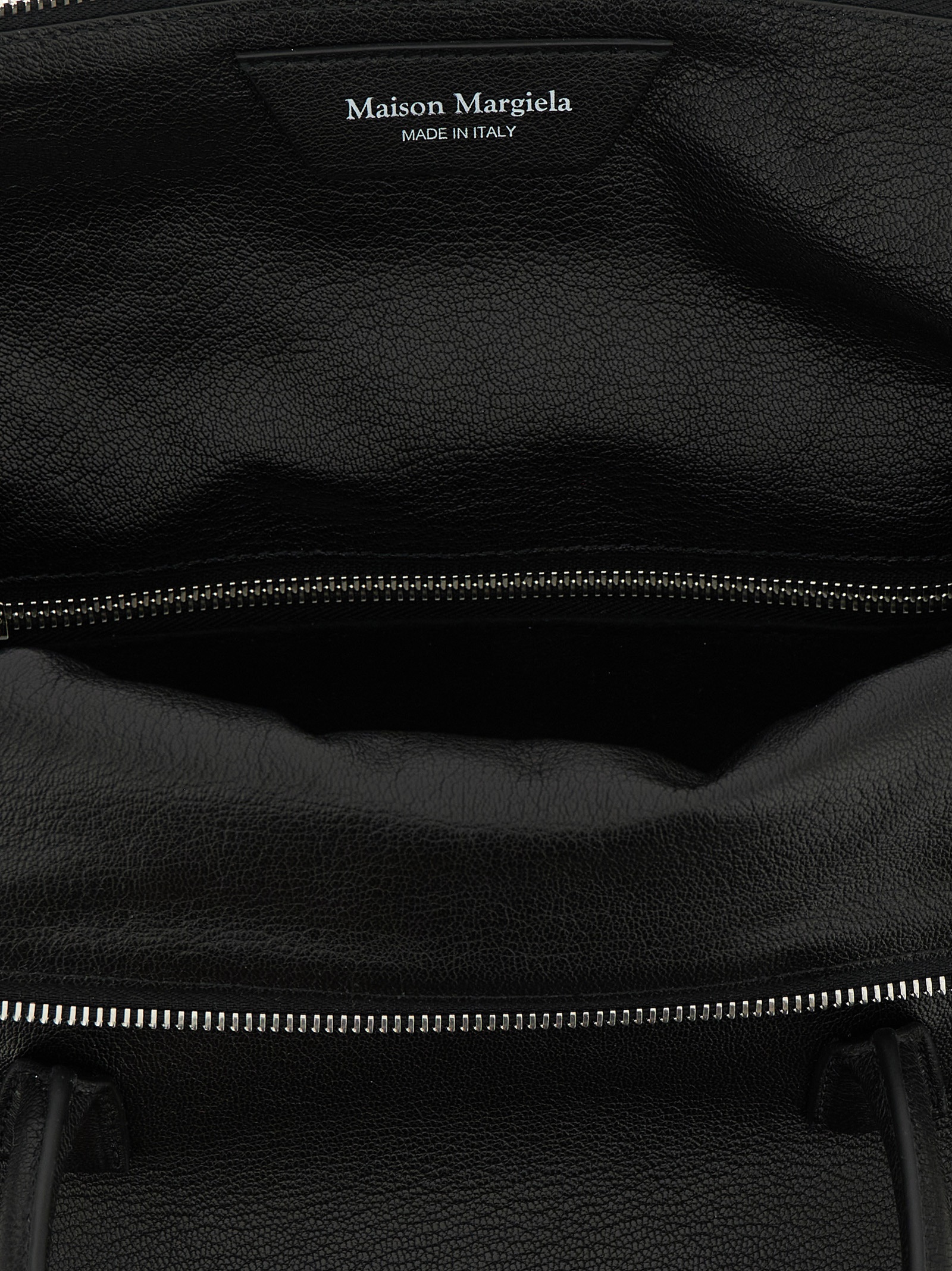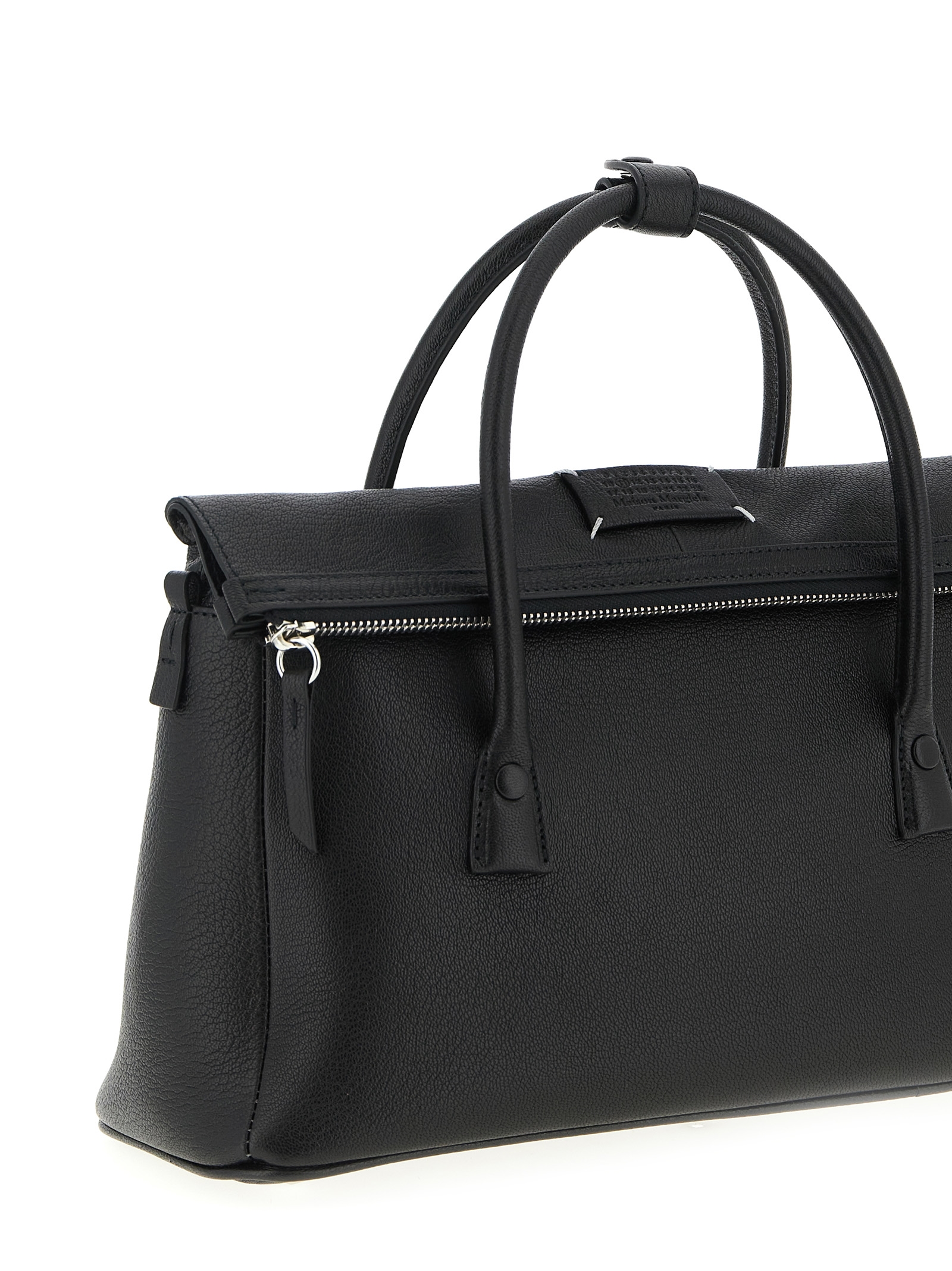 ‘5AC East West’ goat leather handbag with folded zip closure and tone-on-tone ‘Numeric signature’ patch, double fixed handle, back ‘Four stitches’, adjustable and removable shoulder strap.