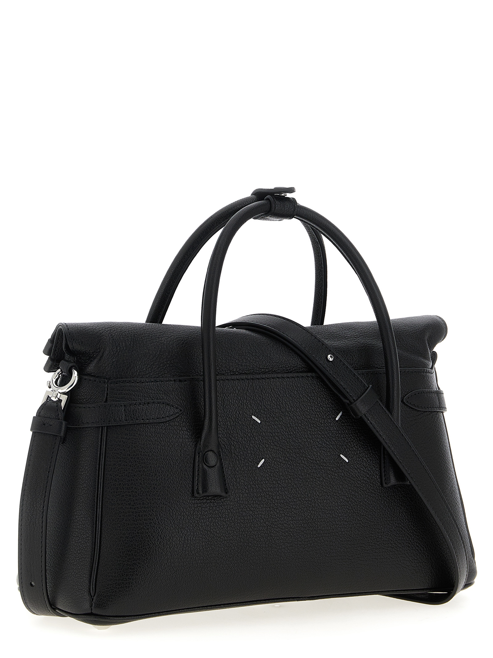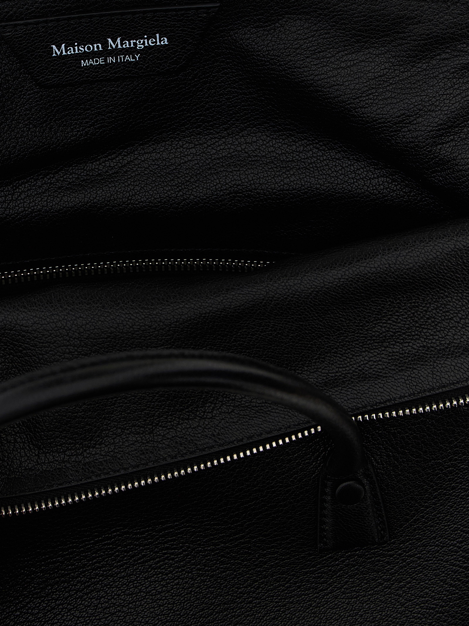 ‘5AC East West’ goat leather handbag with folded zip closure and ‘Numeric signature MM6’ patch, double fixed handle, back ‘Four stitches’, adjustable and removable shoulder strap.