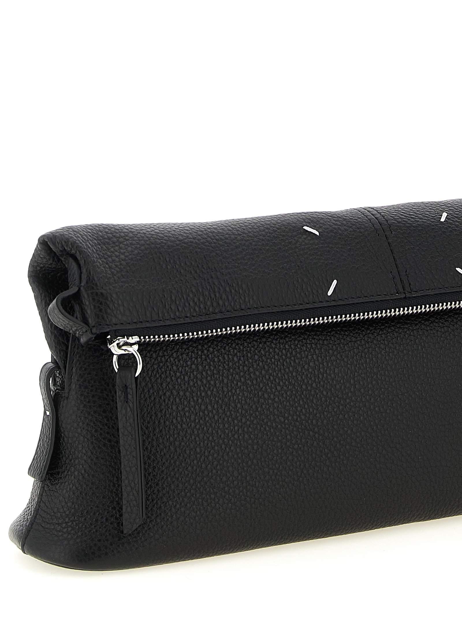 ‘5AC Soft’ hammered calf leather pouch, cotton lining, folded zip closure and front ‘Four Stitches’ closure, rigid base, adjustable and removable shoulder strap.