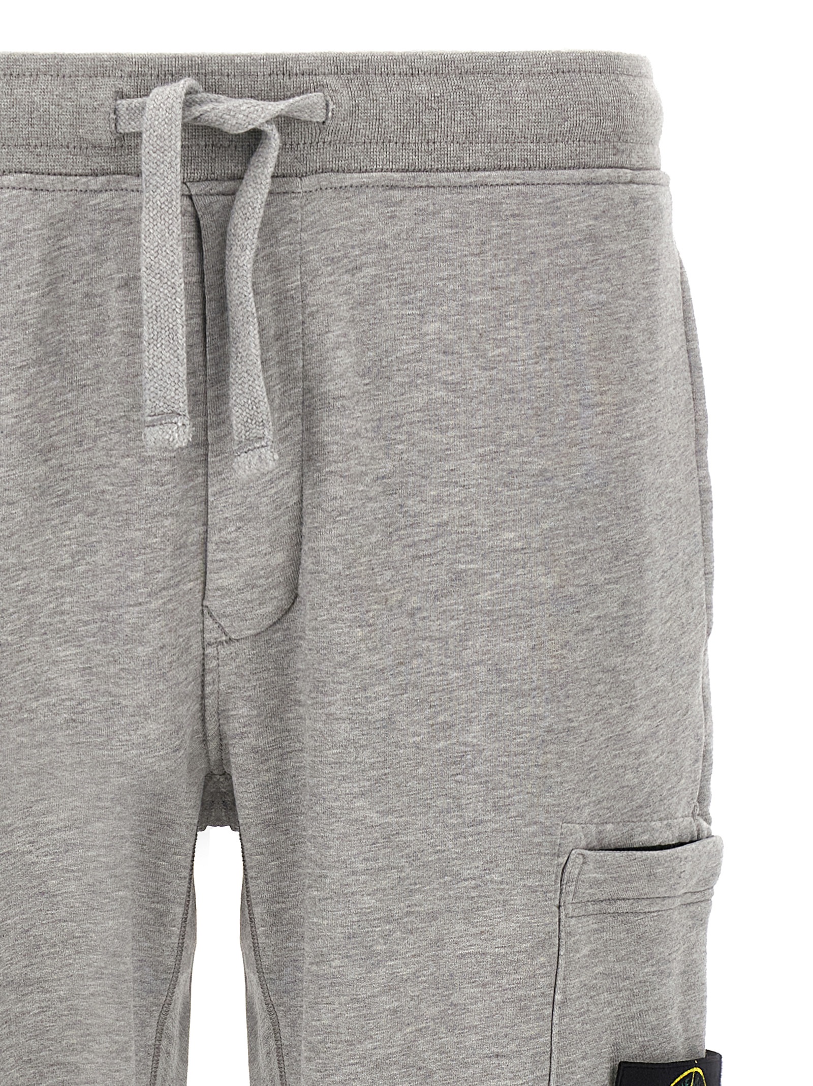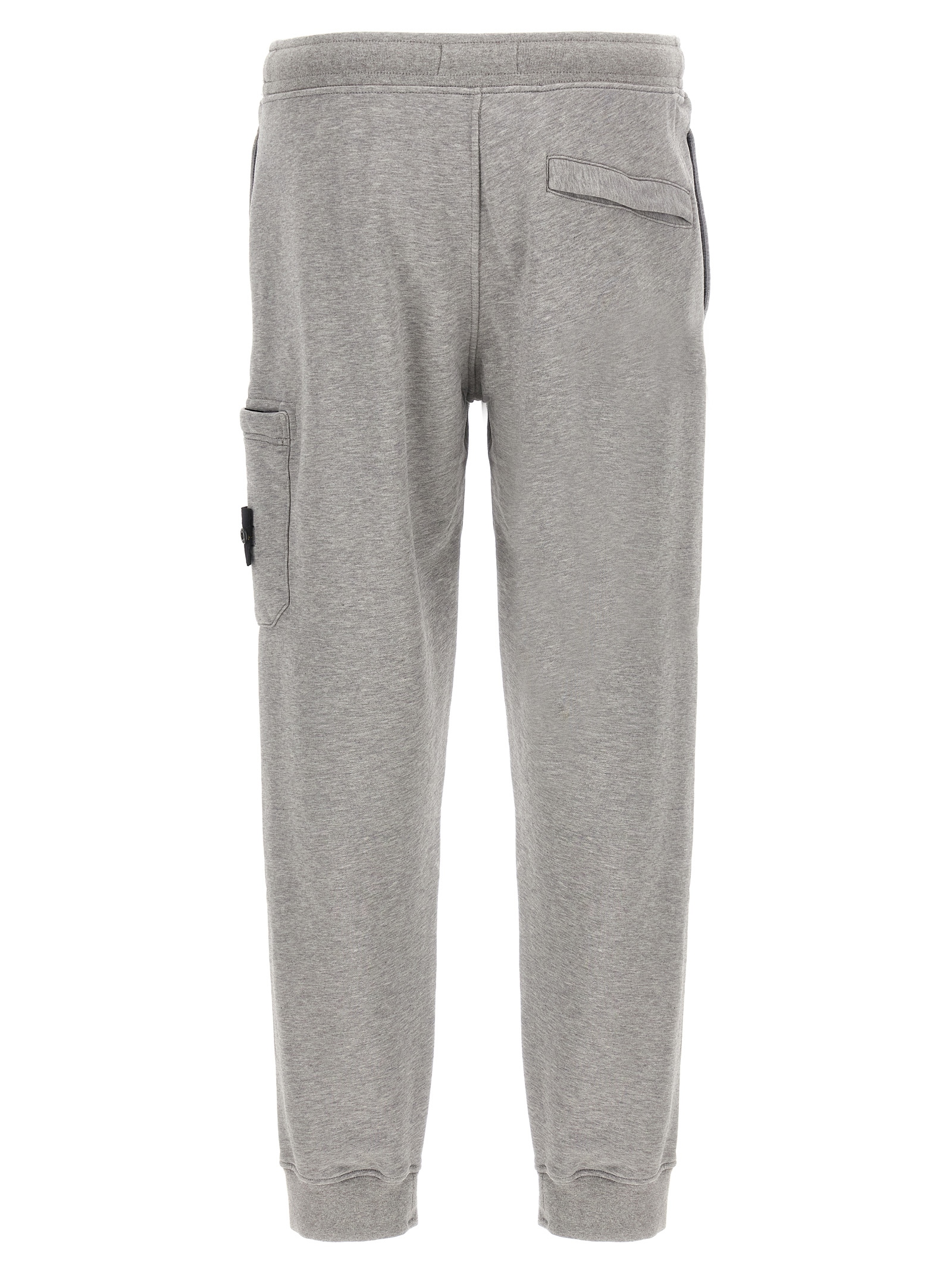 ‘6200010’ joggers in garment-dyed mélange cotton fleece, cargo pocket with logo badge, drawstring elastic waistband, zip flap, pockets, ankle cuffs.