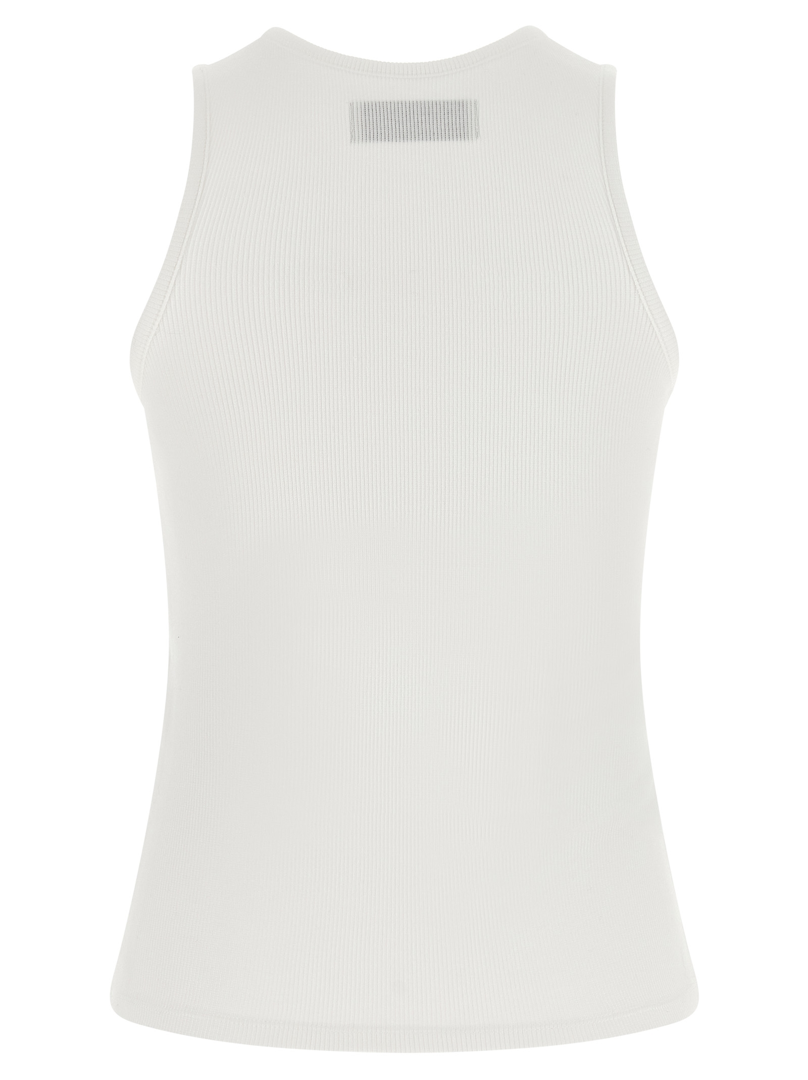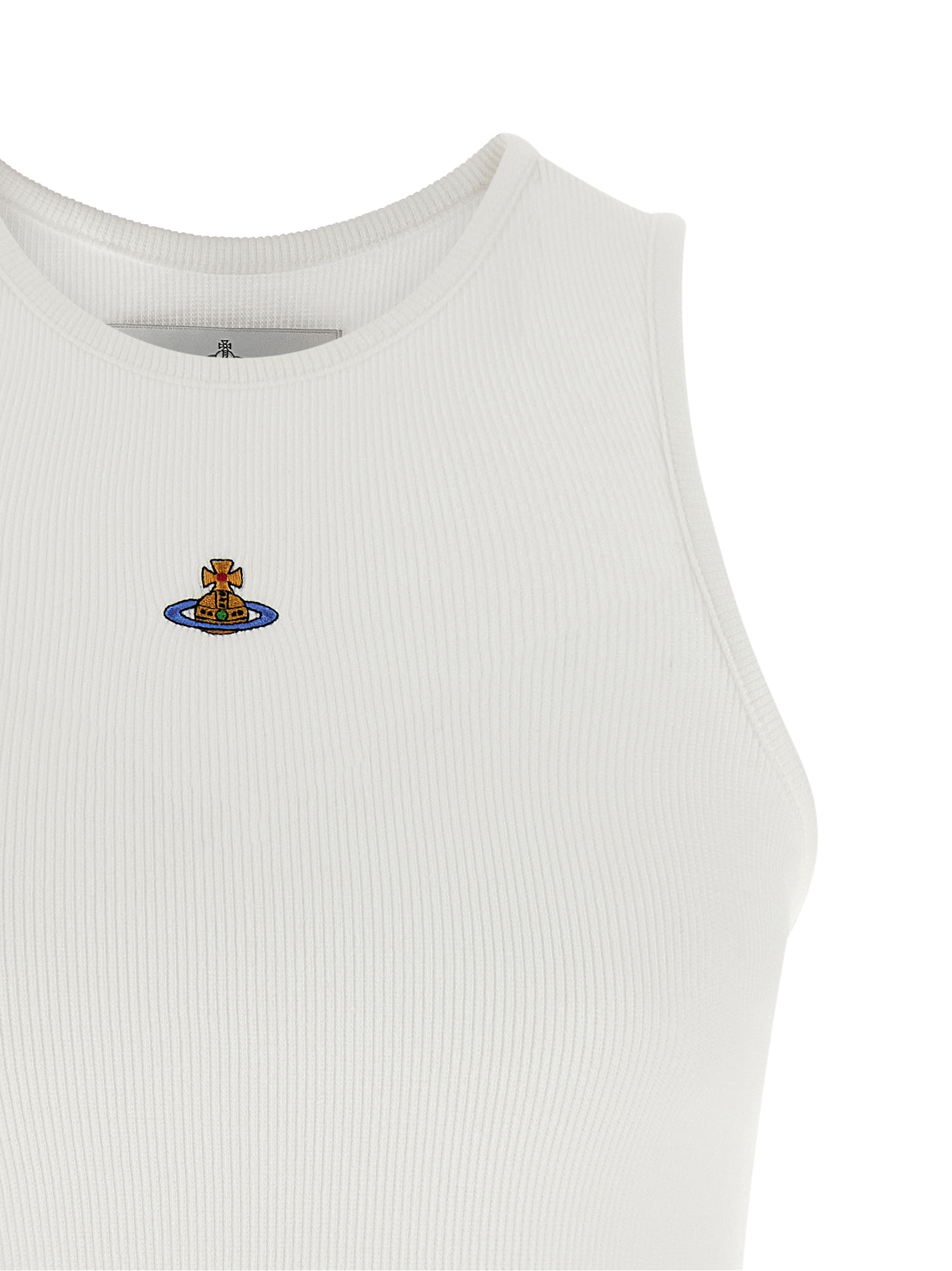 ’90’s’ ribbed cotton jersey top with ‘Orb’ logo embroidery at the front, rowing neckline.