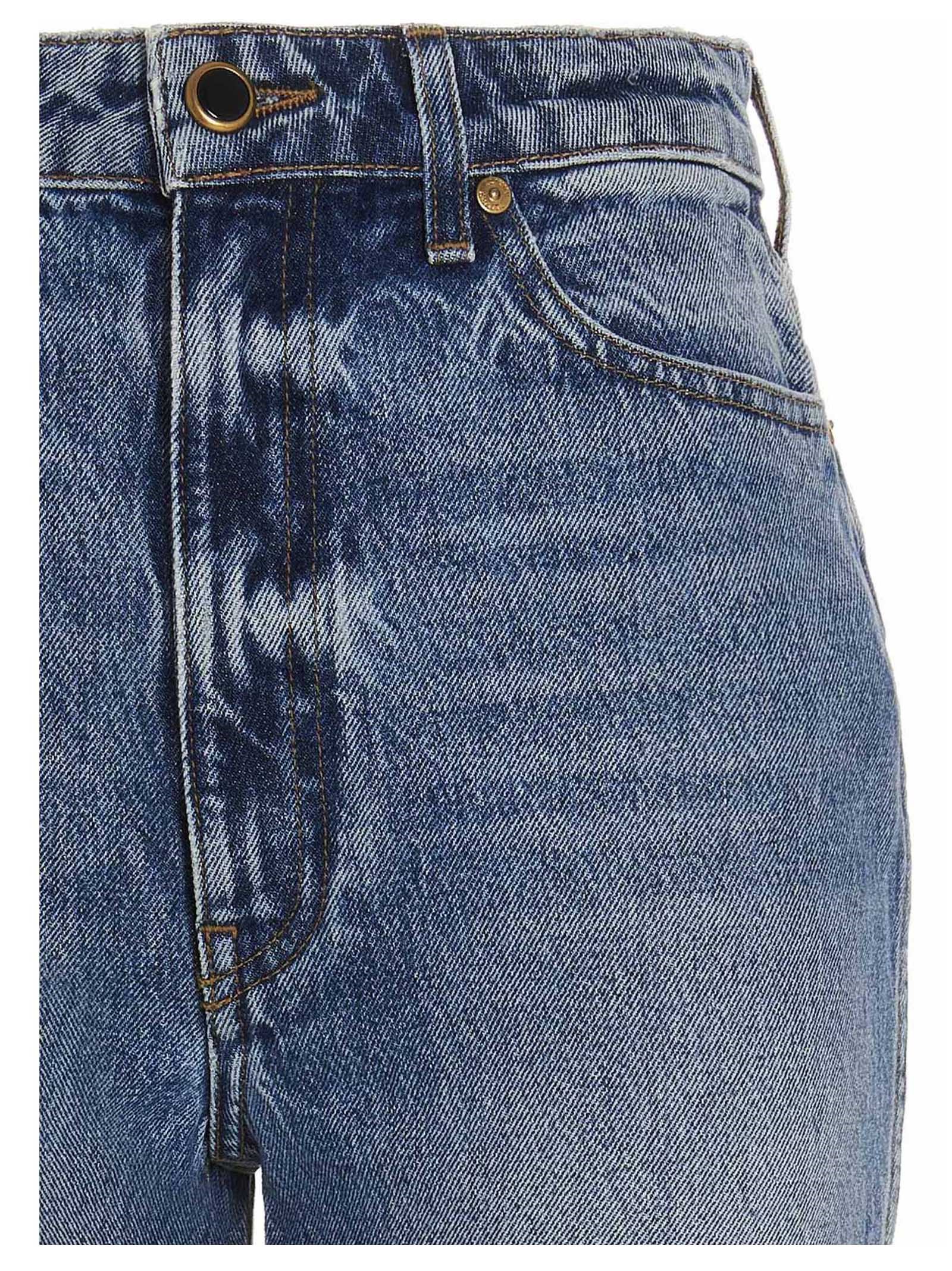 ‘Abigail’ five-pocket, medium-waist, cotton denim jeans with a zip and button fastening, destroyed details and a straight leg.