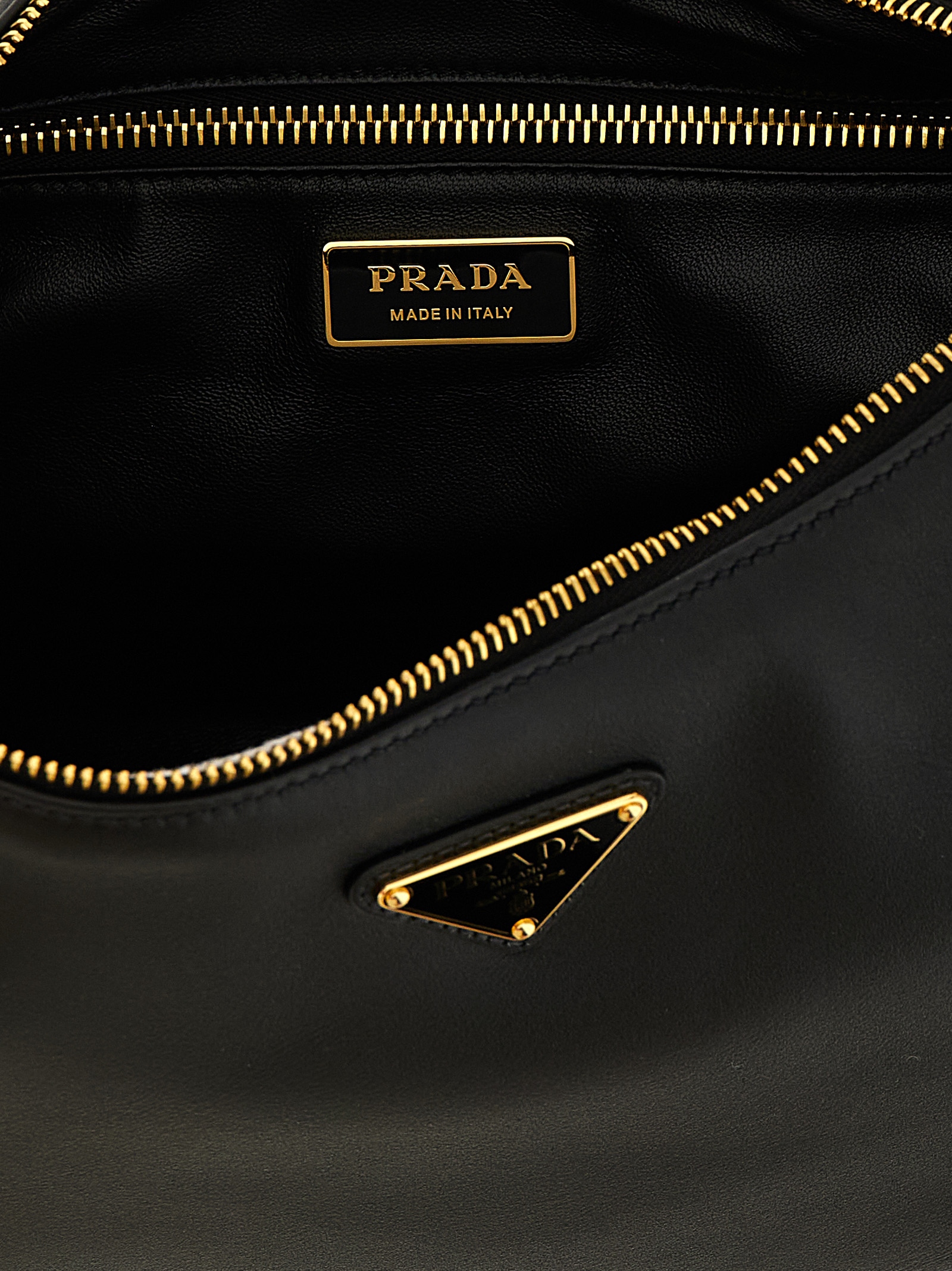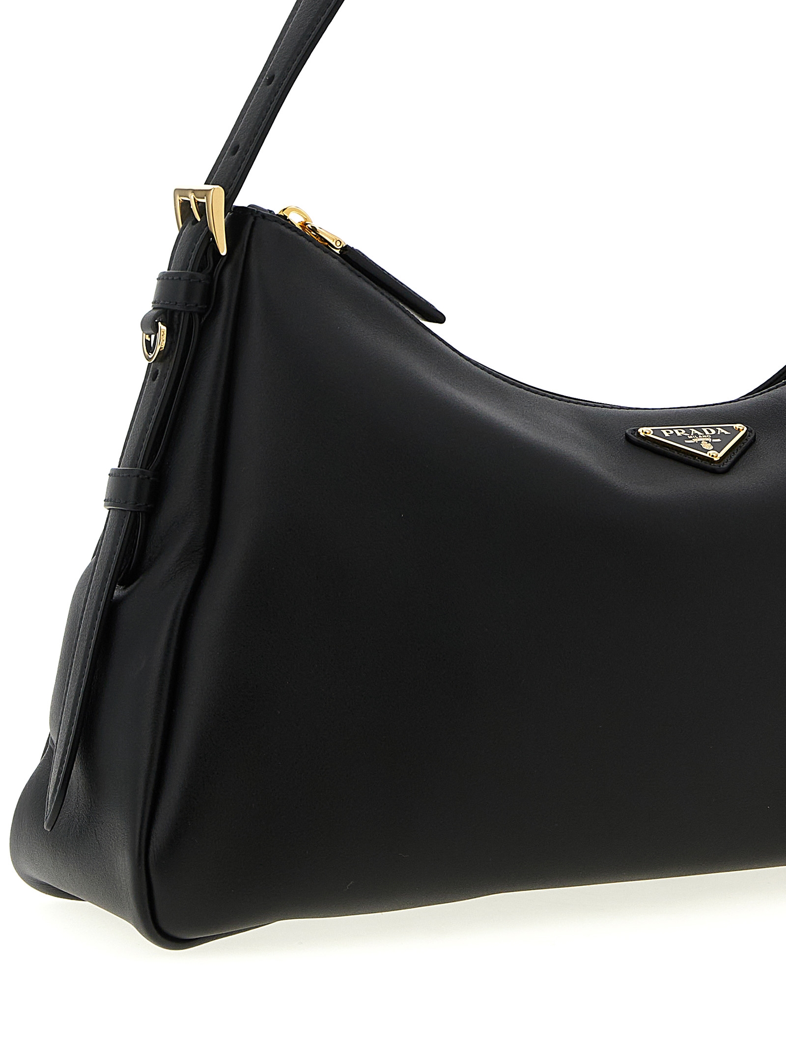 ‘Aimée’ large shoulder bag, adjustable leather handle, removable keyring, metal trim, zip closure, enameled metal triangle front logo.