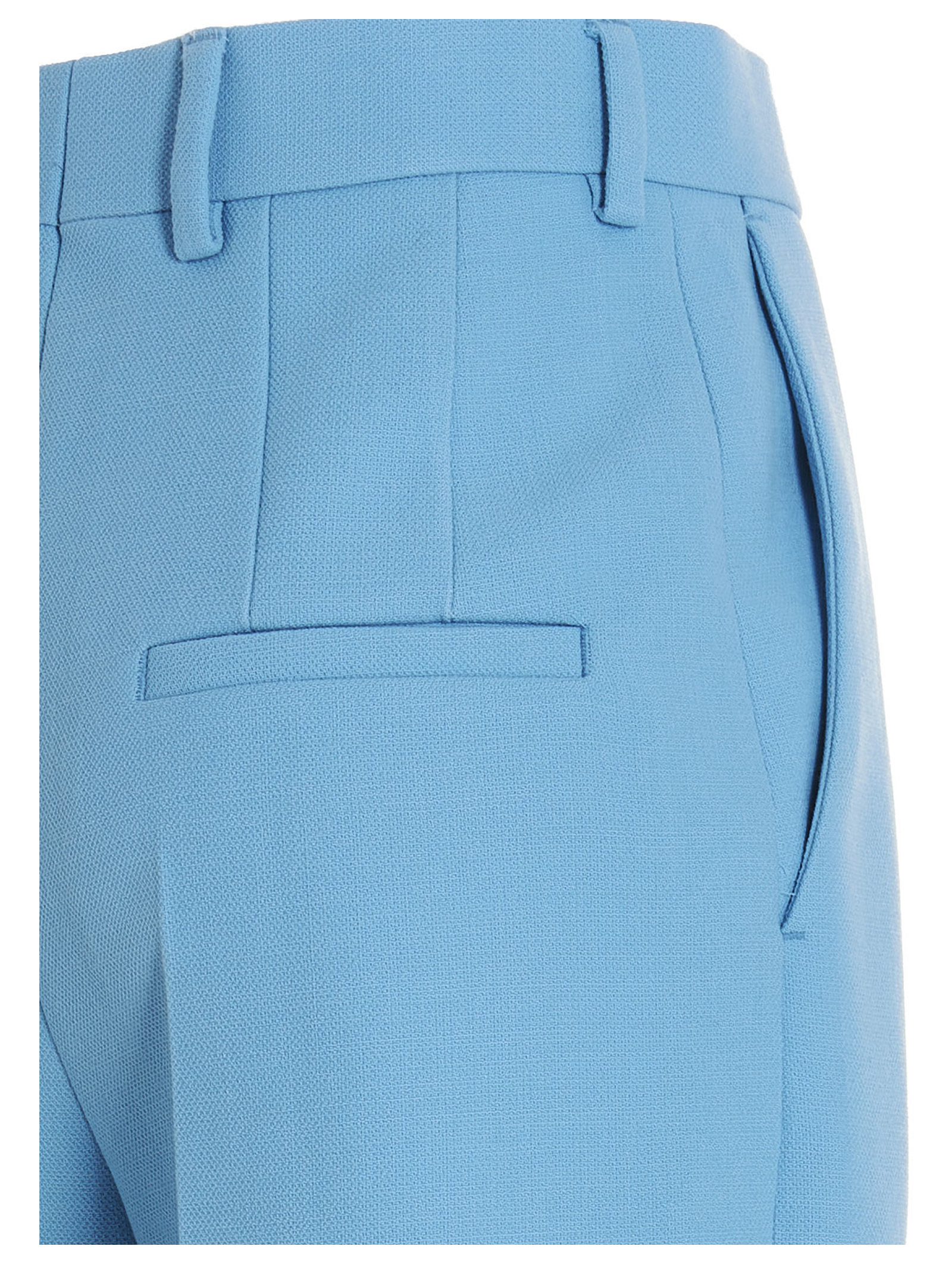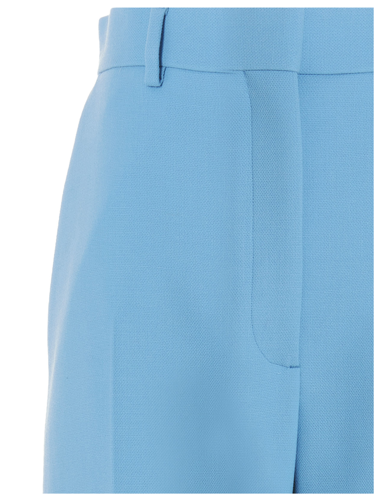 Alaskan Blue’ merino wool trousers with high waist, straight leg, hook closure, zip and button.