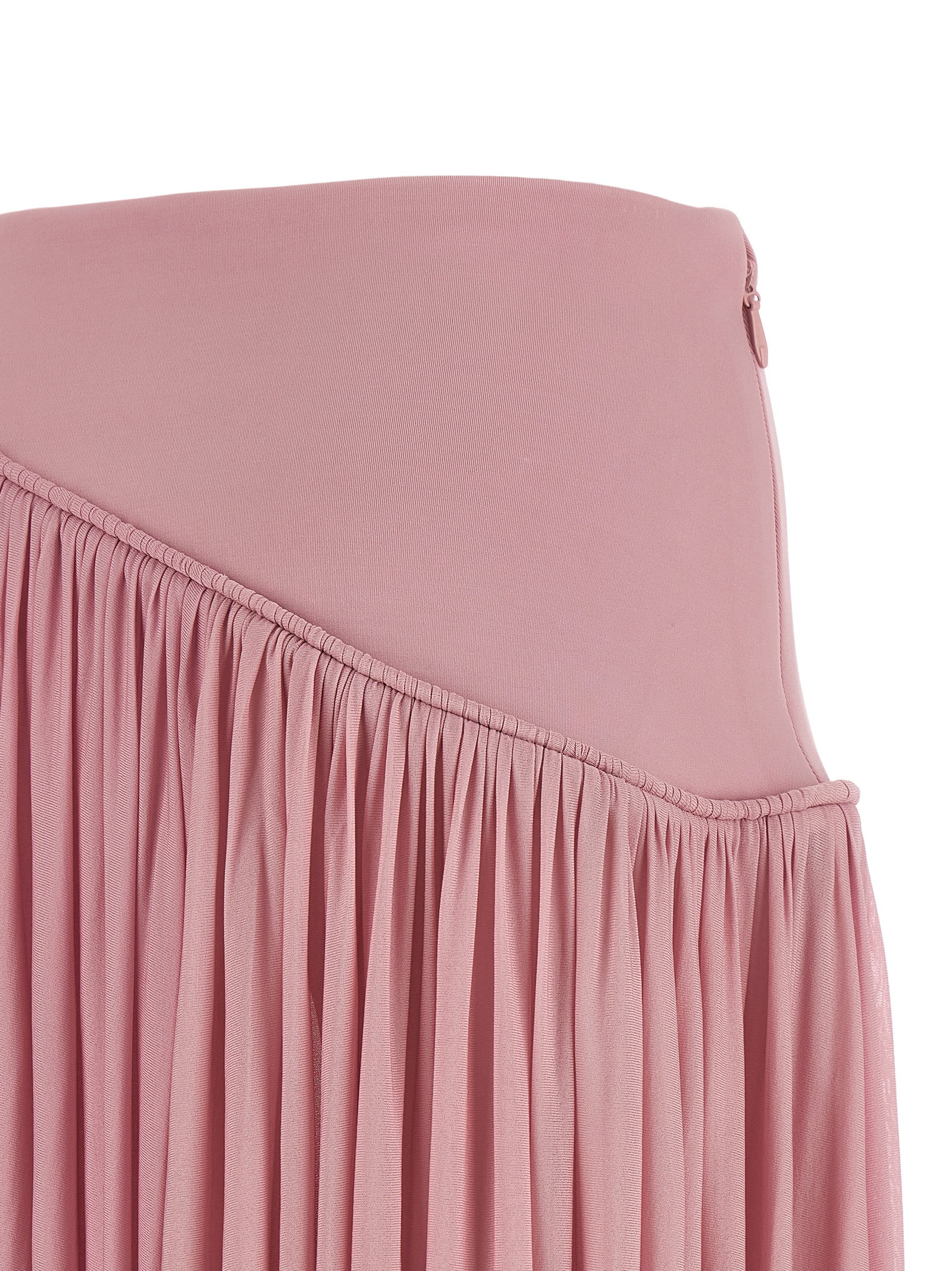 Long ‘Alchemy’ skirt in fluid viscose, asymmetrical stretch insert at the waist and curls all over the garment, medium waist, side zip closure, lining.