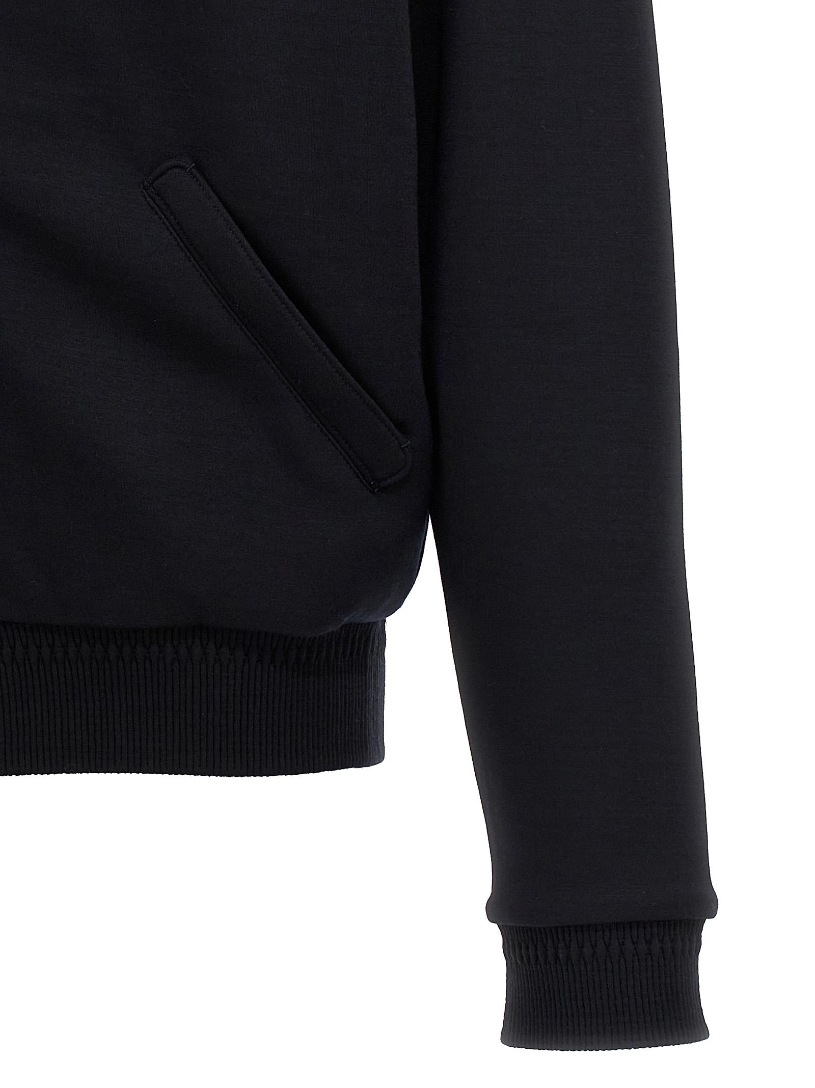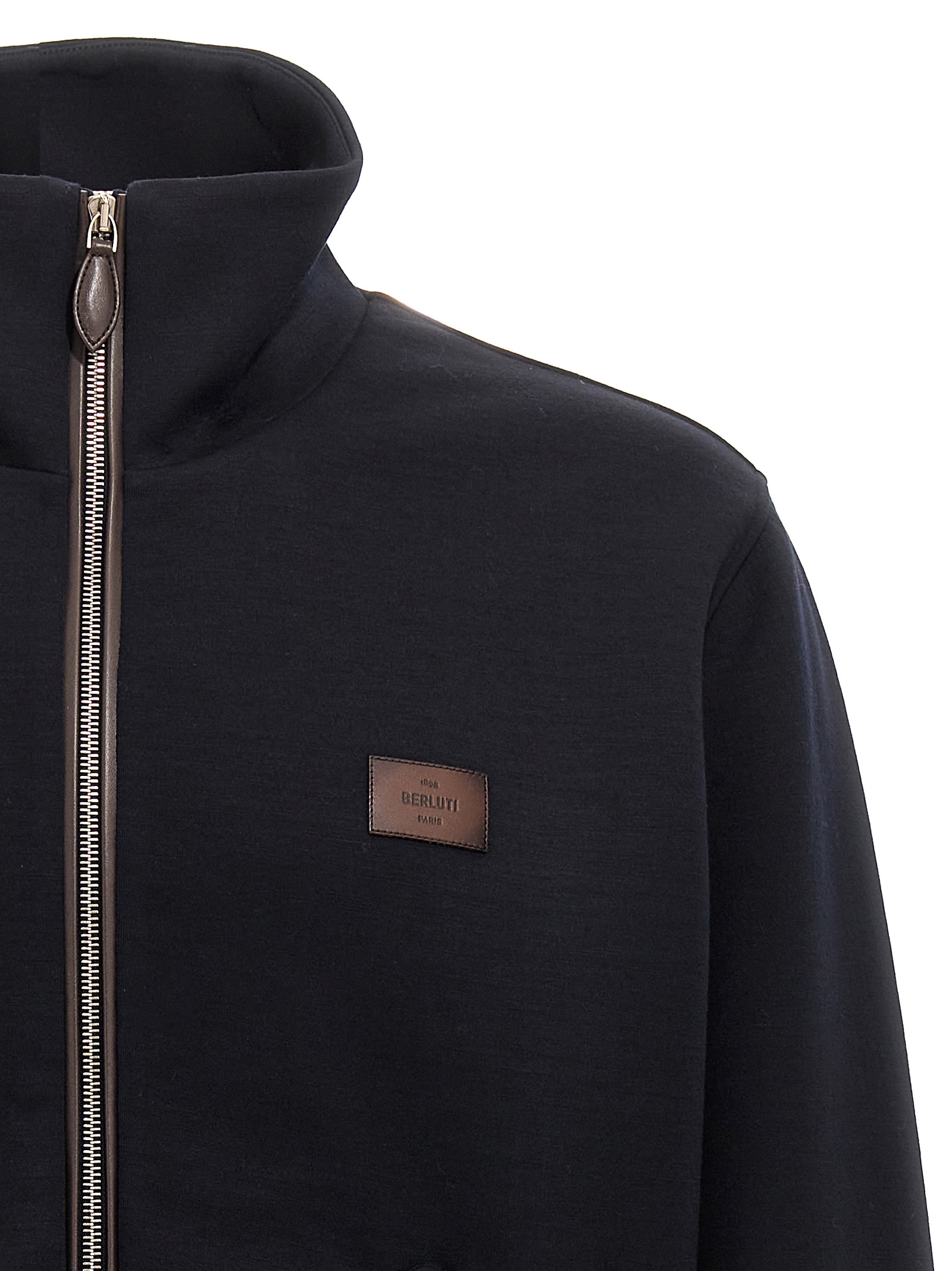 ‘Alessandro’ wool blend sweatshirt with front logo patch, high neck, zip closure, pockets, long cuffed sleeves.