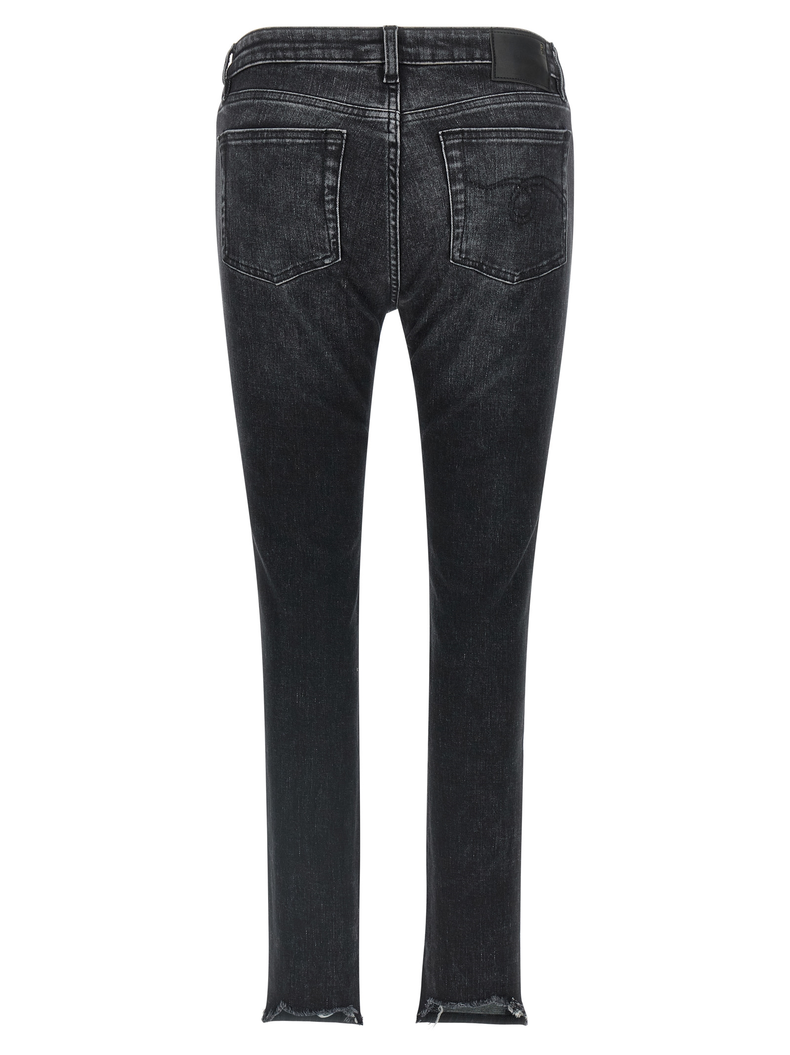 ‘Alison’ used-effect stone washed stretch cotton denim jeans, medium waist, front zip and button closure, five pockets, back logo tag.