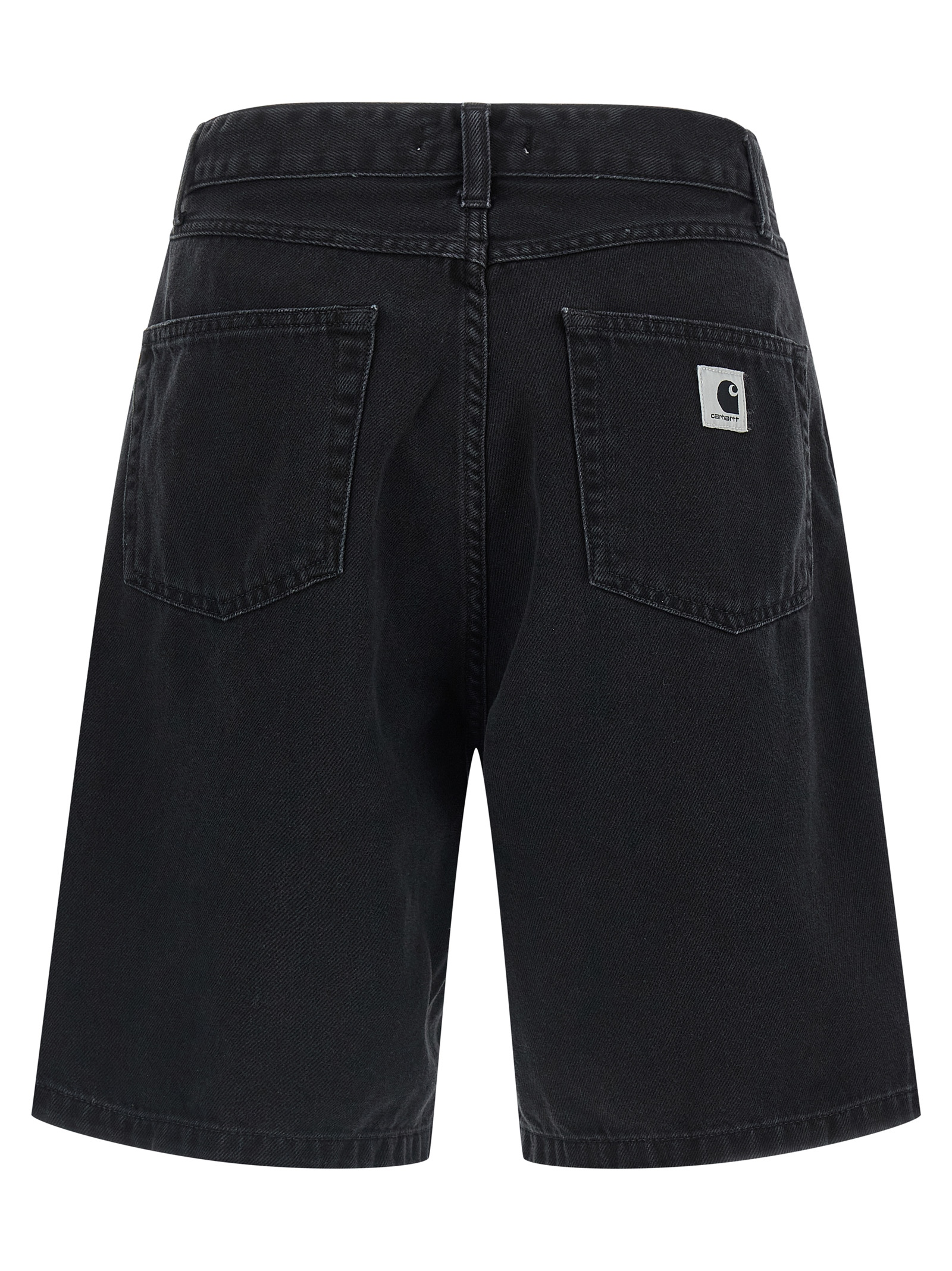 ‘Alta’ bermuda shorts in heavy cotton denim with high waist, front pinces, wide flared leg, front zip and button closure, pockets, back logo patch.