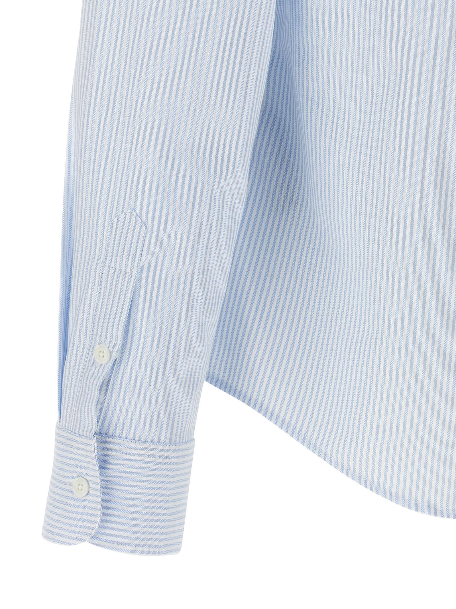 Striped Oxford cotton shirt with button-down style with ‘Ami De Coeur’ embroidered logo, front button closure, and long cuffed sleeves.