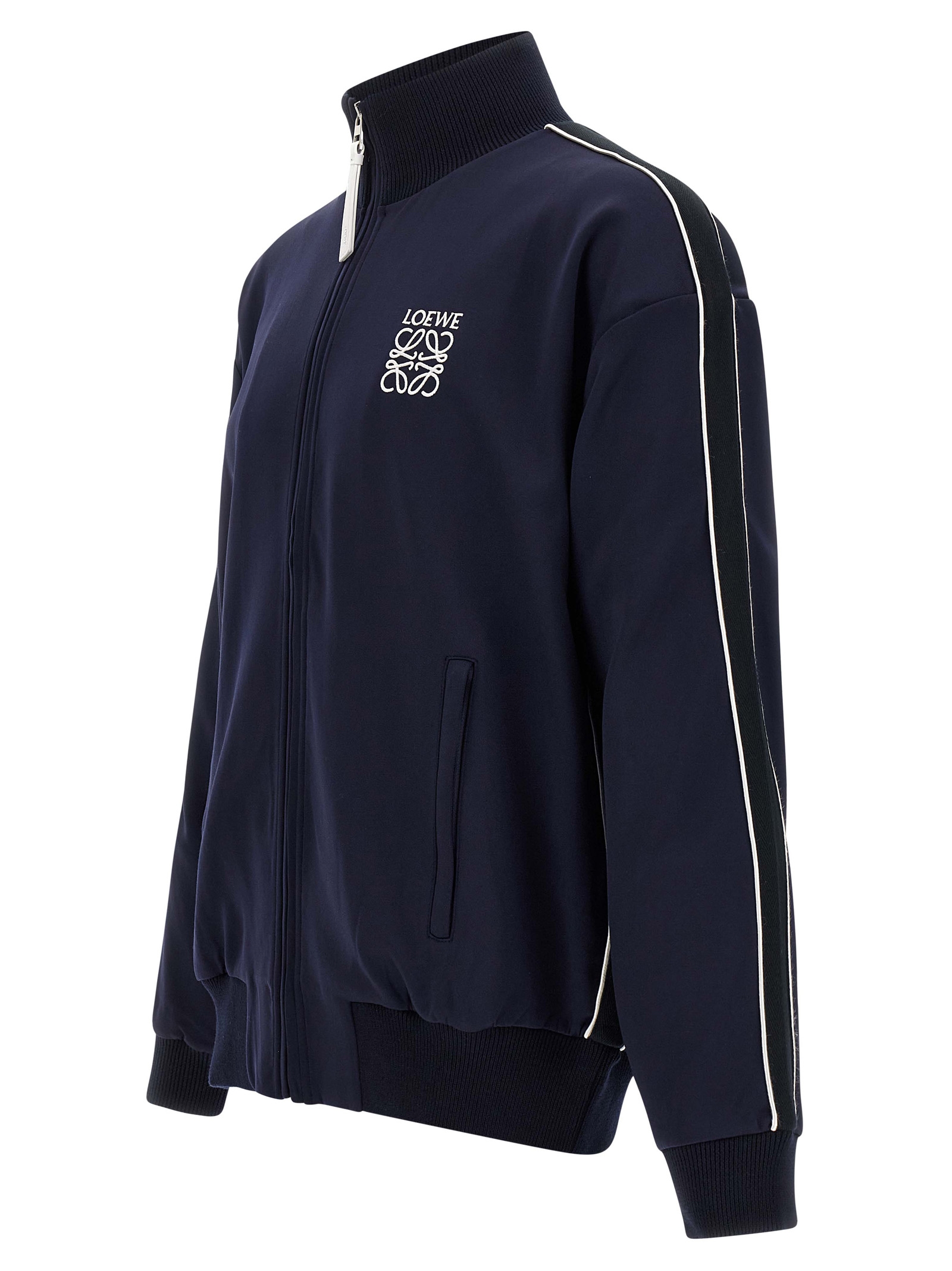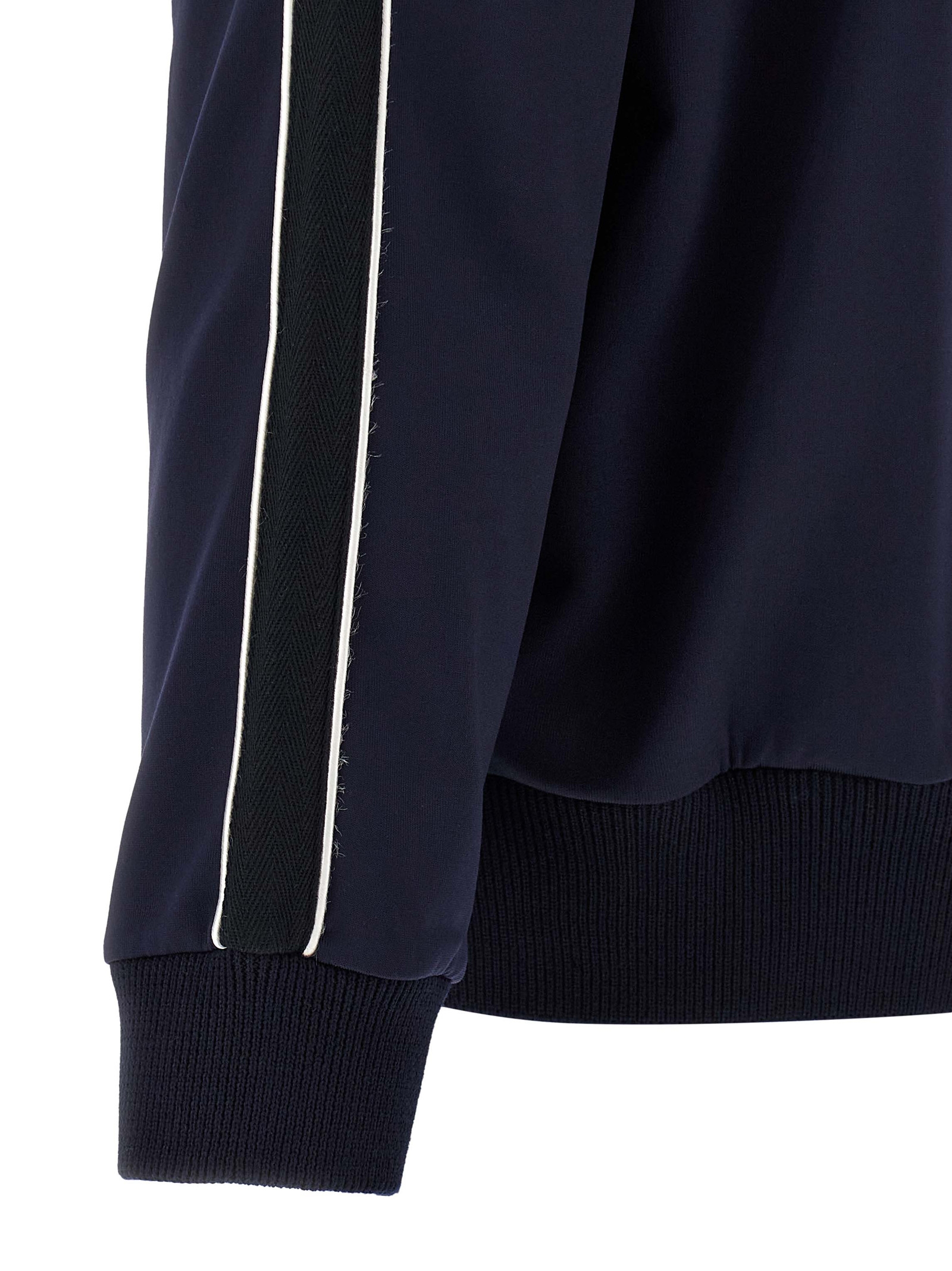 Light technical jersey sweatshirt with herringbone ribbon on the sleeves and mesh lining, Anagram embroidery and front zip closure, pockets, long cuffed sleeves.