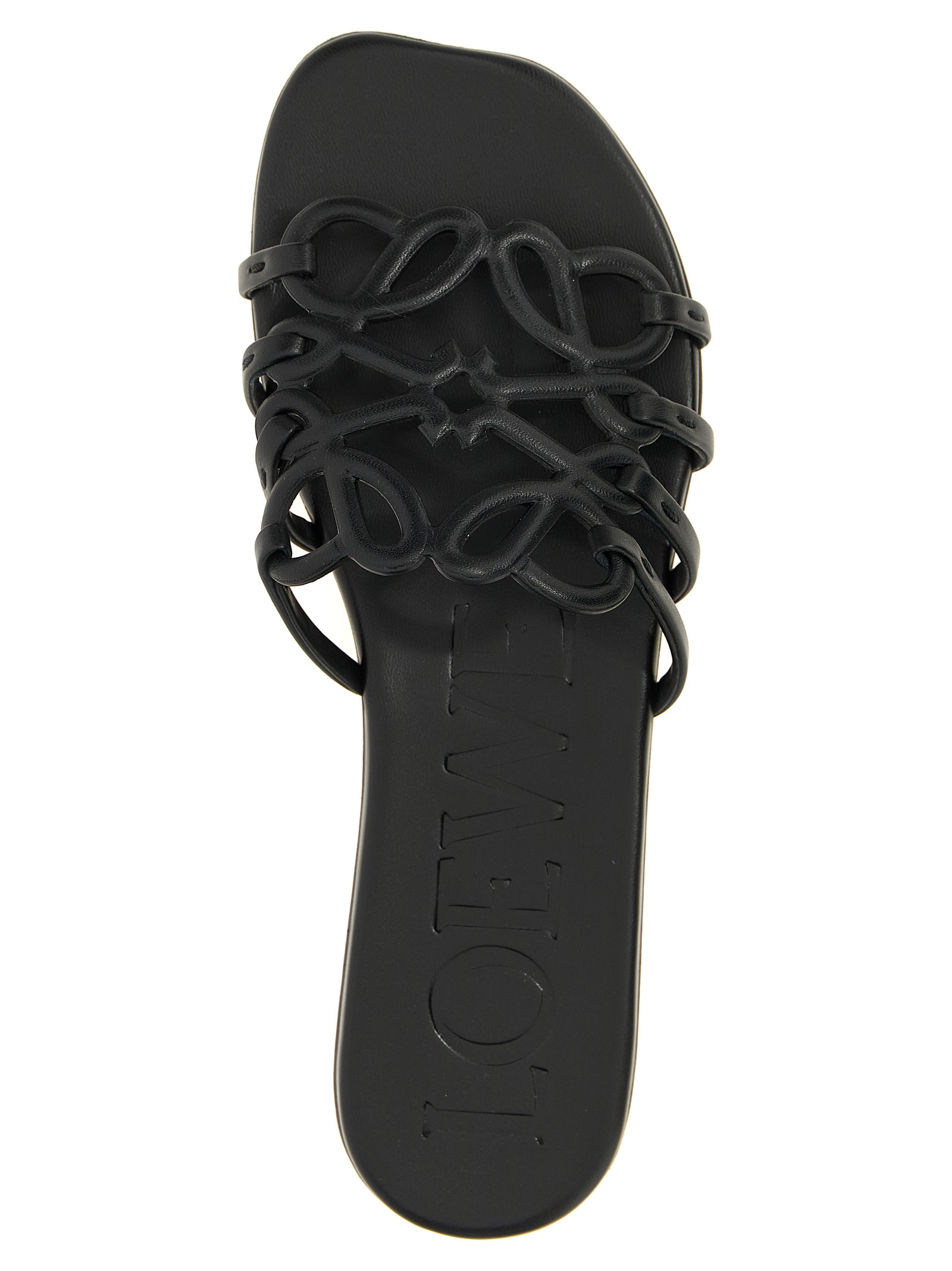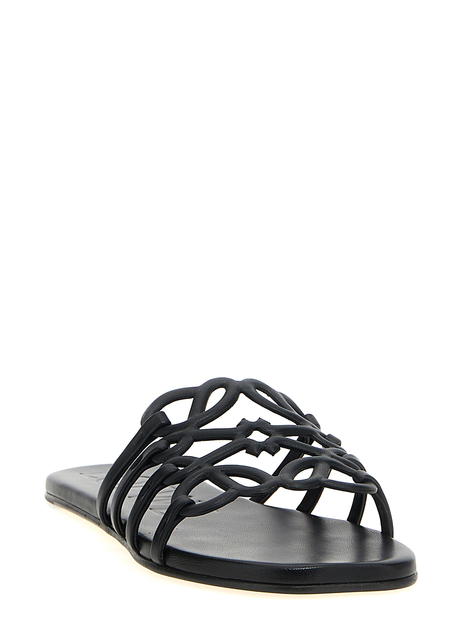 ‘Anagram Petal’ calf leather slides with perforated Anagram pattern on the upper, painted edging