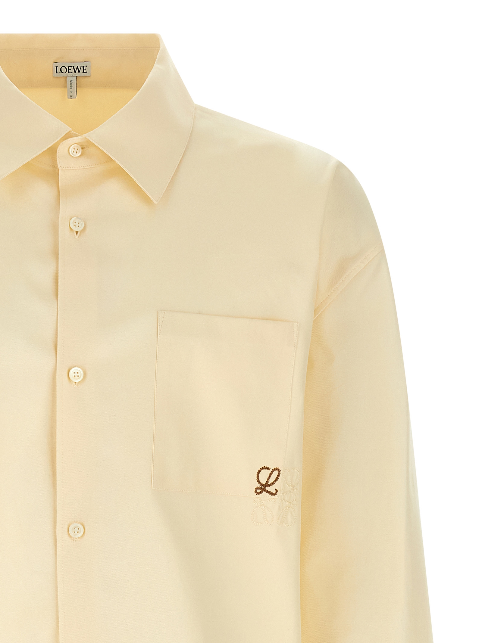 Medium weight cotton twill shirt, pocket with two-tone ‘Anagram’ embroidery, front button closure, long sleeves with cuffs and dropped shoulders.