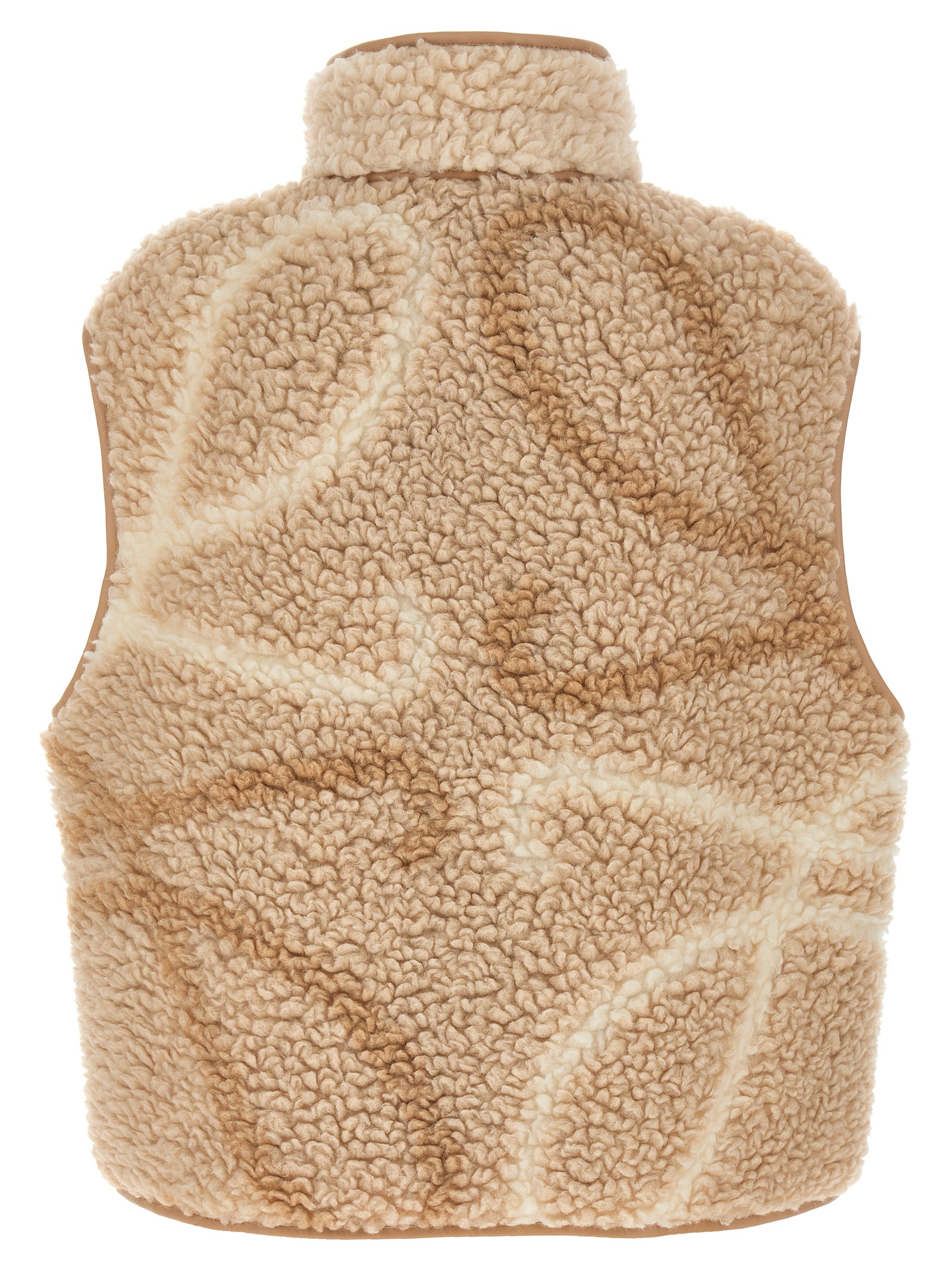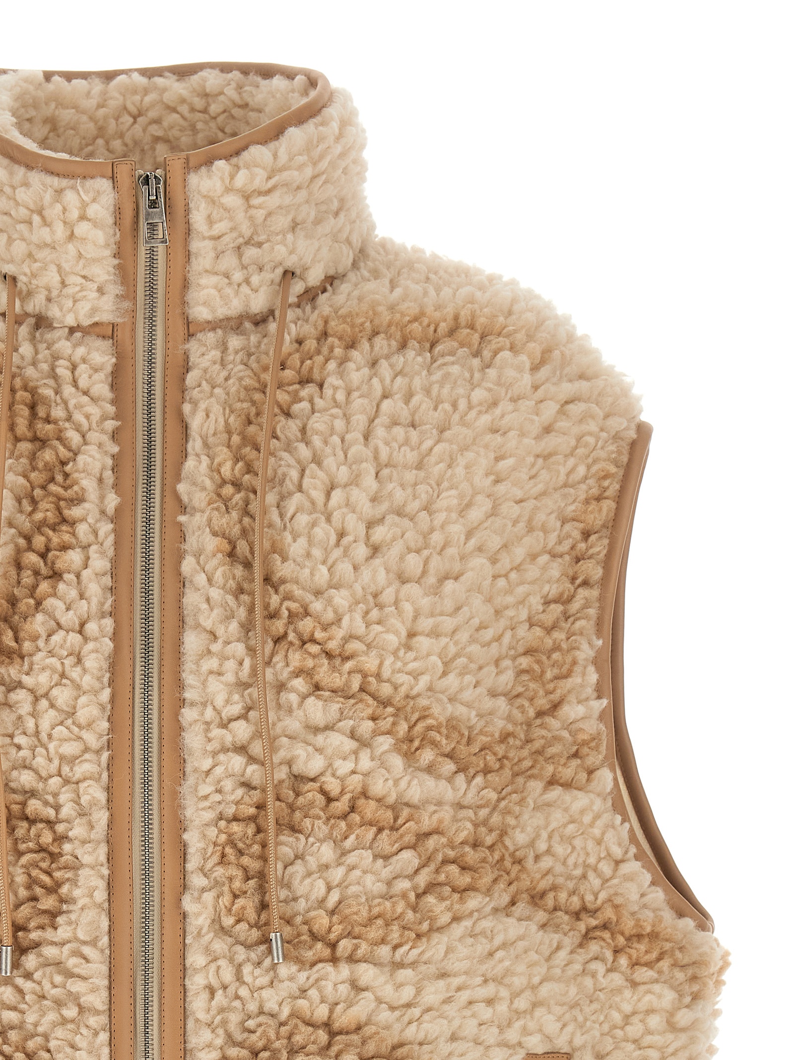 Teddy-effect jacquard fleece vest with Anagram pattern printed on the front and back, leather details, drawstring high neck, front zip closure, pockets