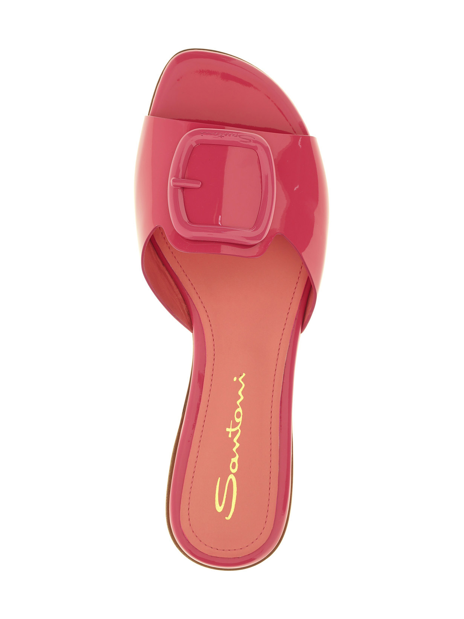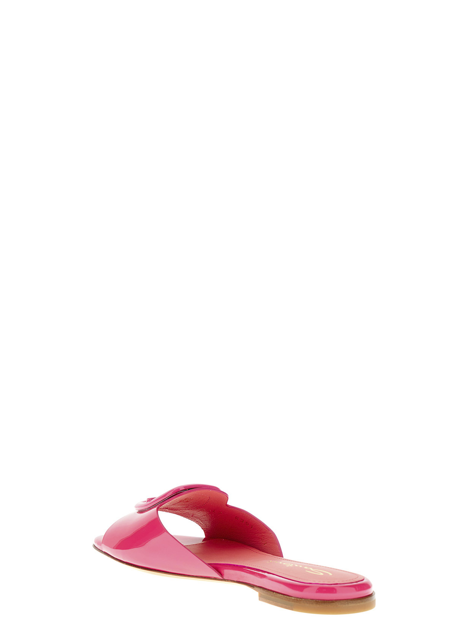 ‘Apricot’ leather sandals with metal buckle detail.e detail.