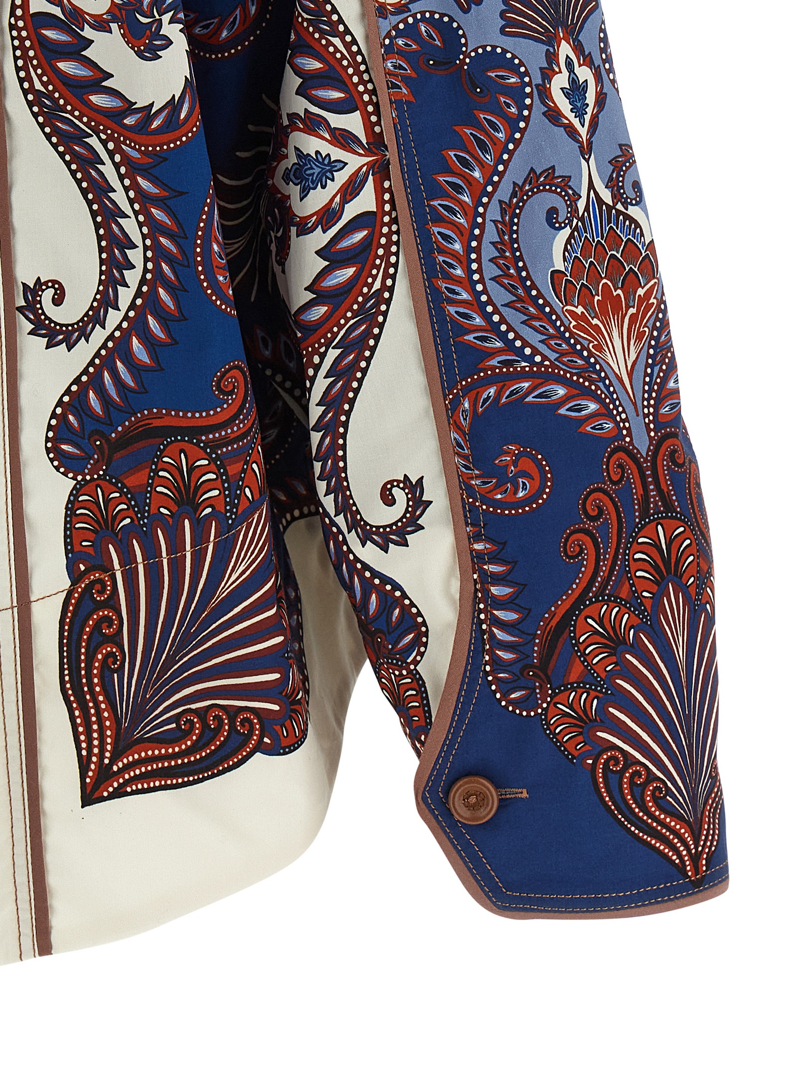 Arabesque scarf Sand’ all-over print cotton shirt with straight style with pointed collar, front button closure, stitching details and inserts on the length, asymmetrical hem and high edge on the bottom of double fabric.