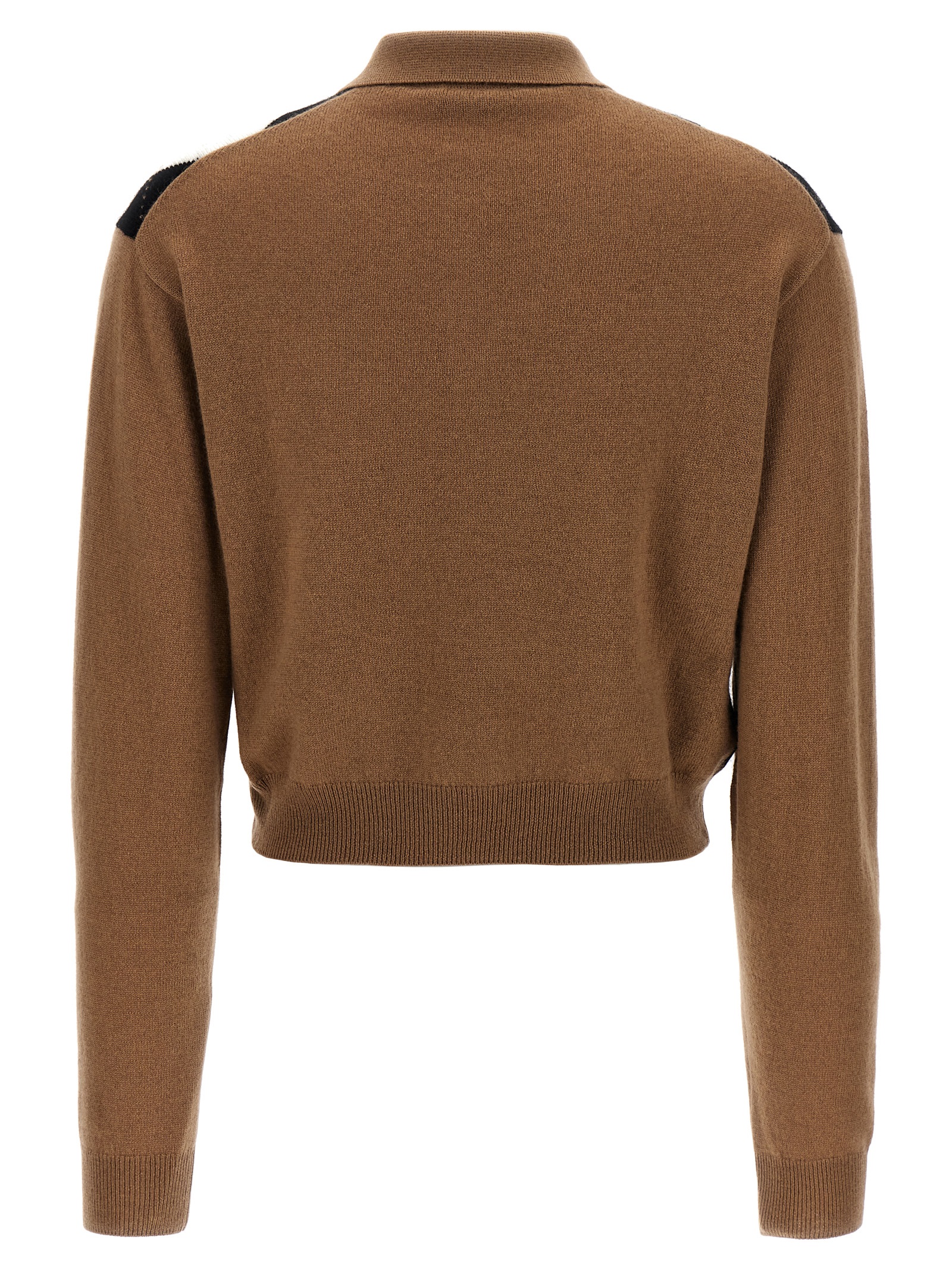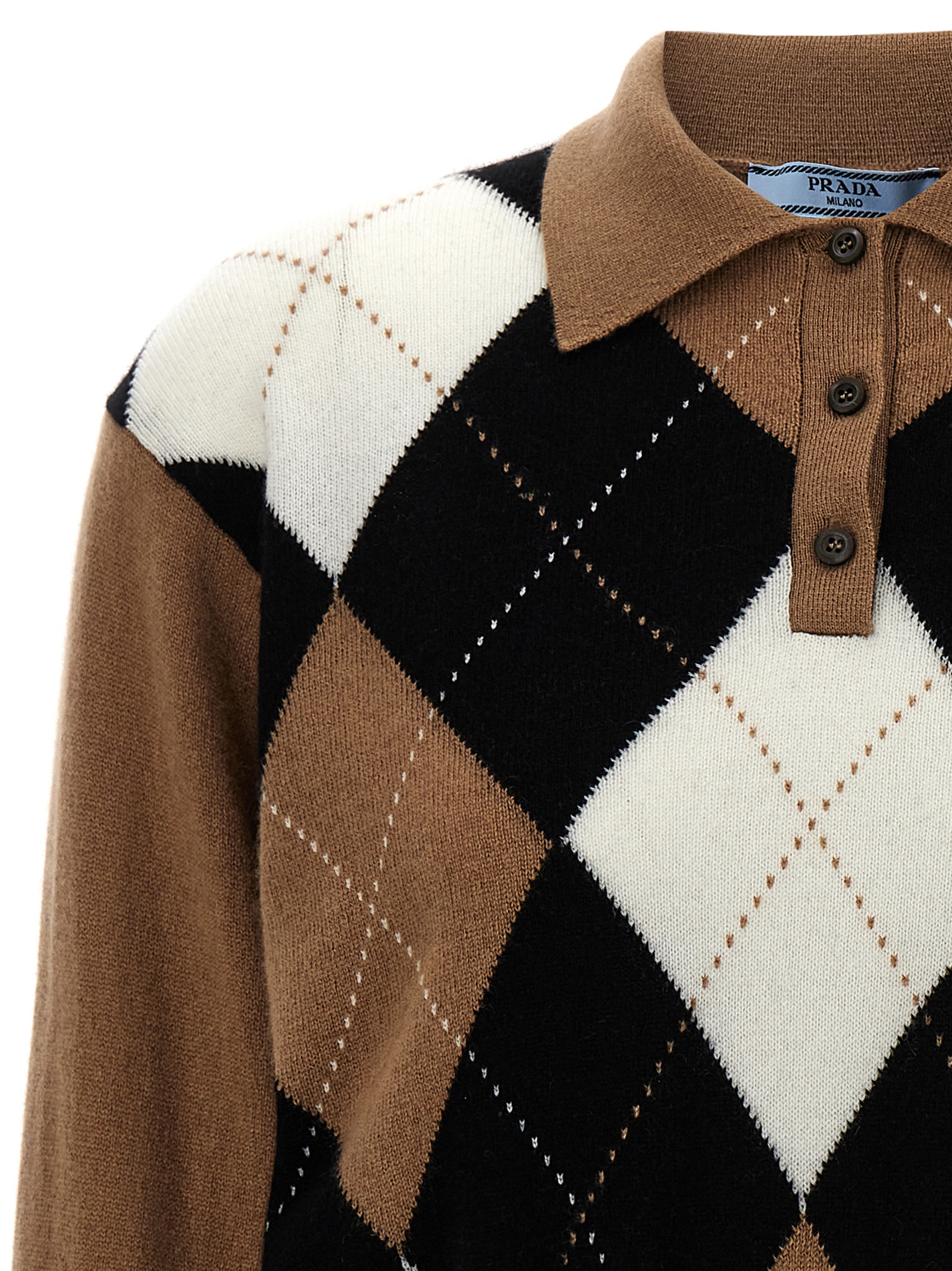 ‘Argyle’ cachemire sweater with front pattern, polo style with buttons and collar.