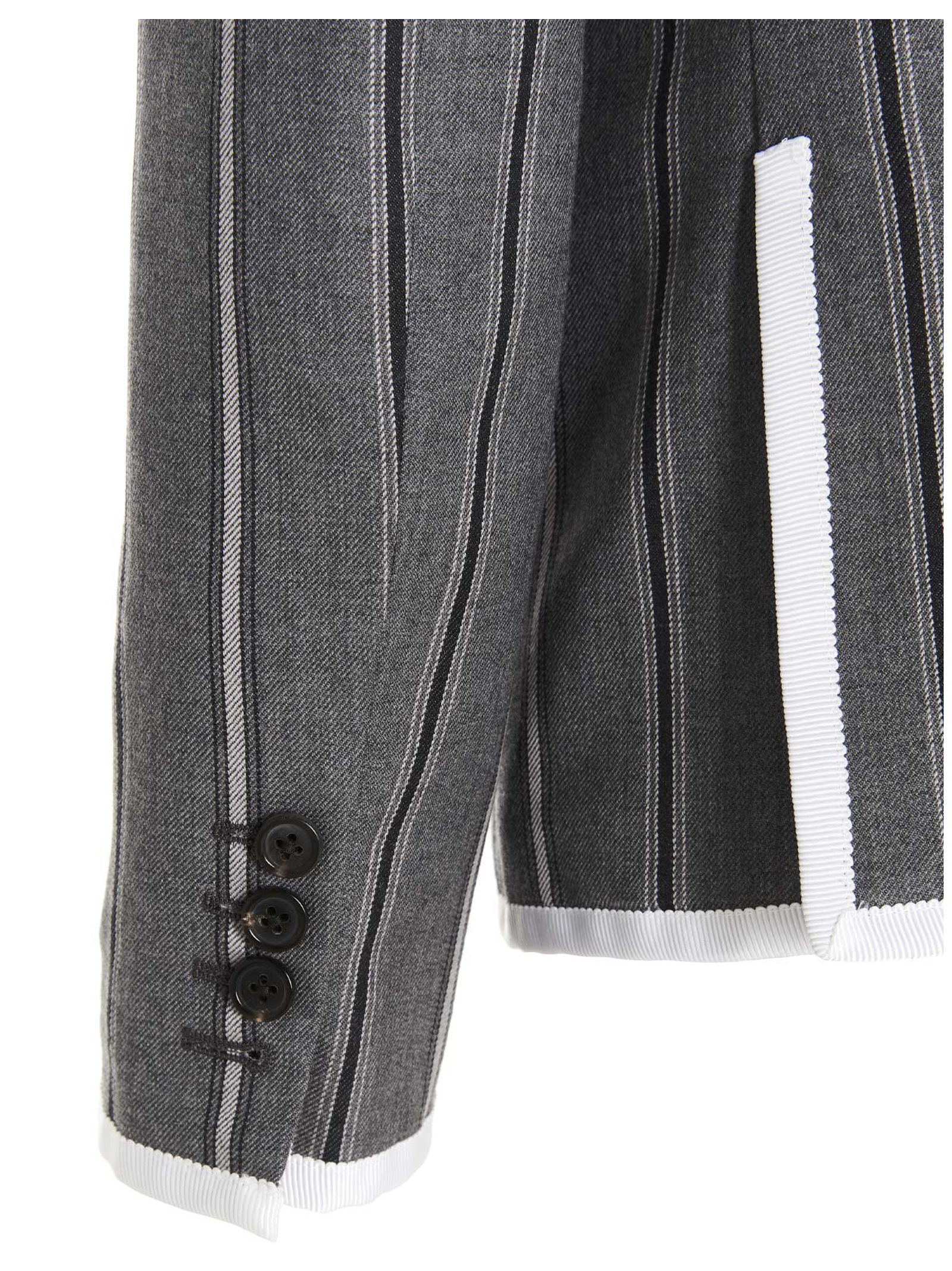 ‘Armohole Sport’ stripe wool twill blazer with contrast trims, tape rwb detail on the sleeves and front closure. With two button closure.