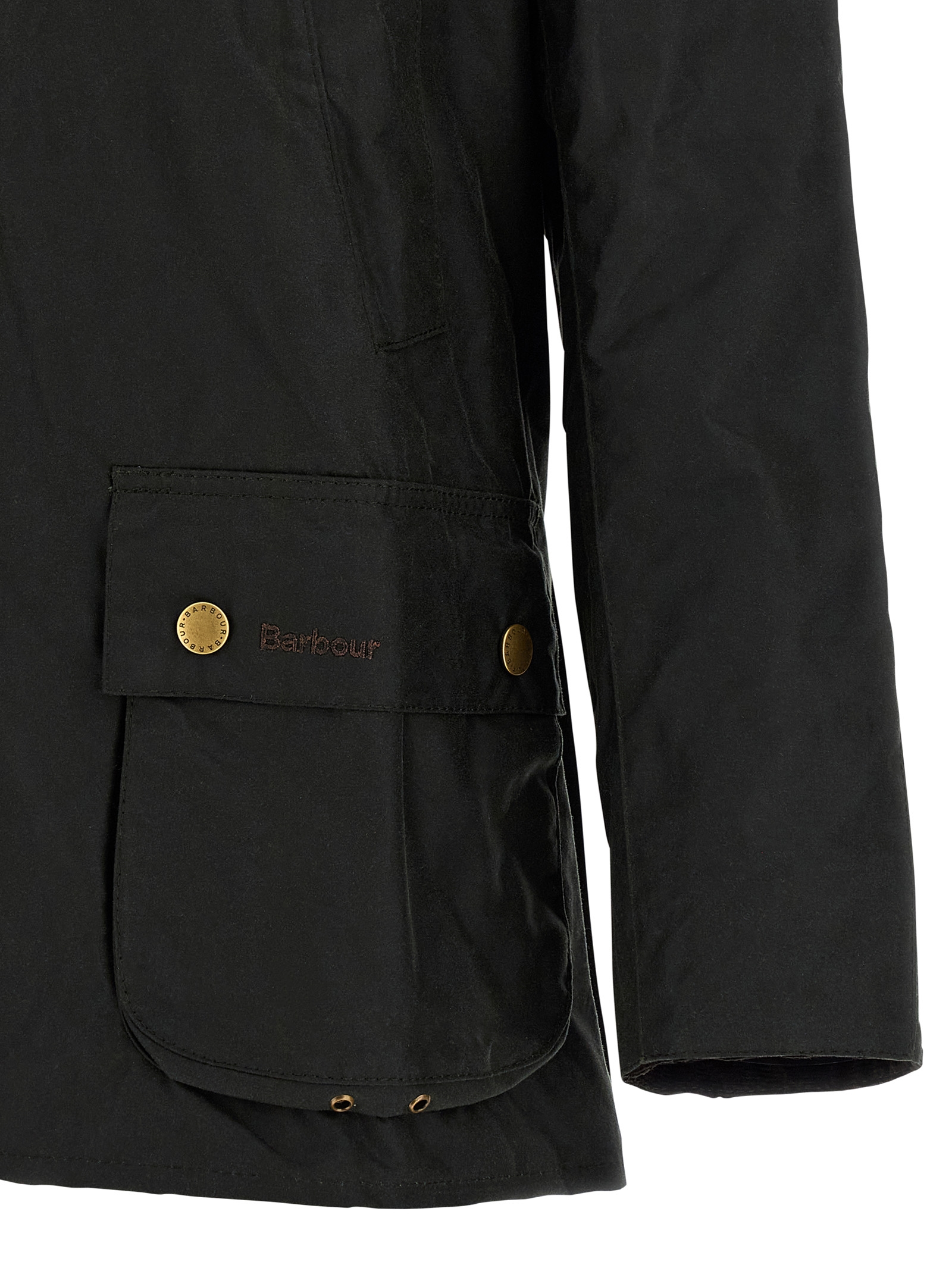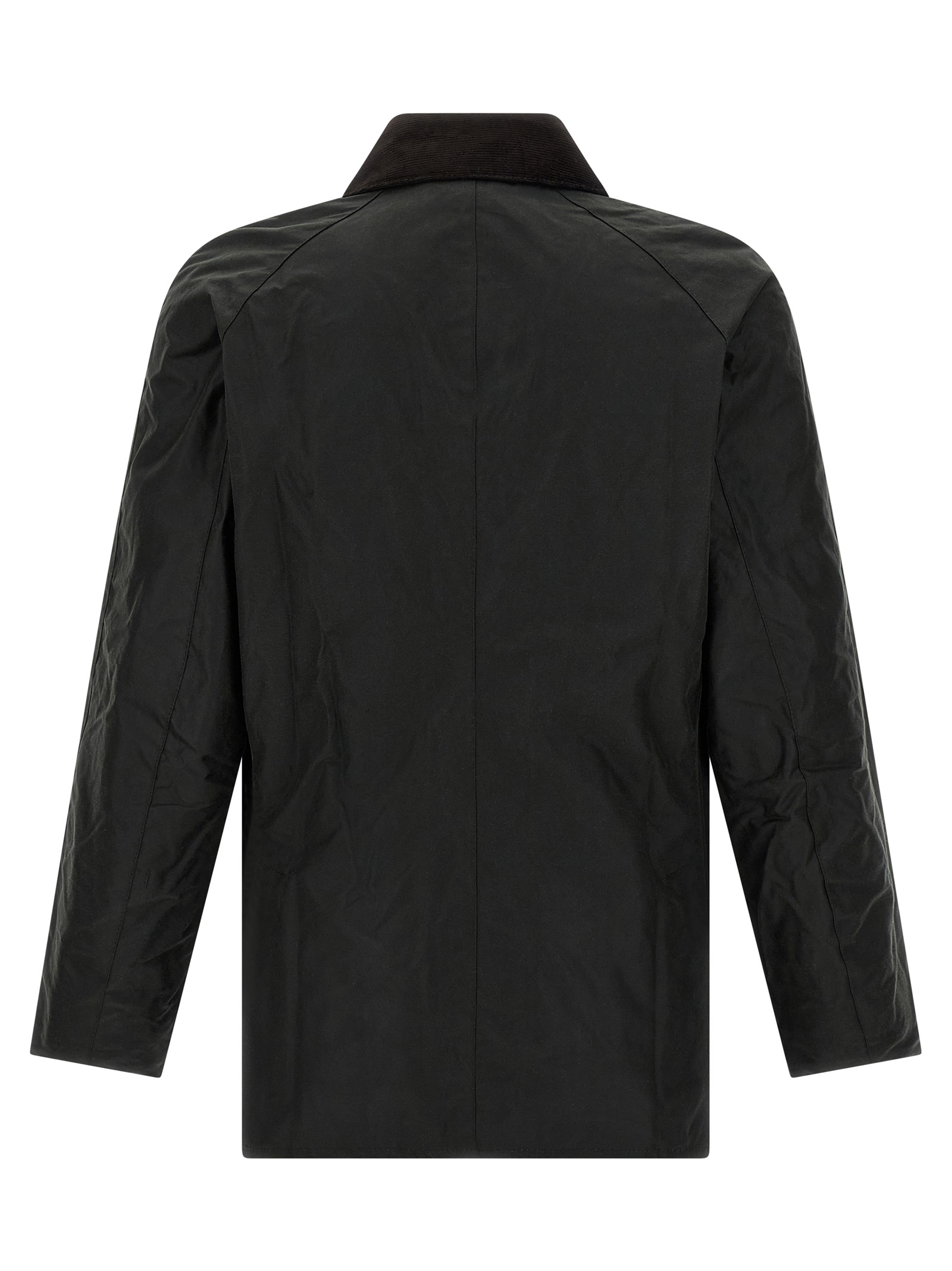 Barbour’s iconic ‘Ashby’ waxed cotton jacket with corduroy collar, double zip and clip-on button closure, pockets, long sleeves, logo embroidery.