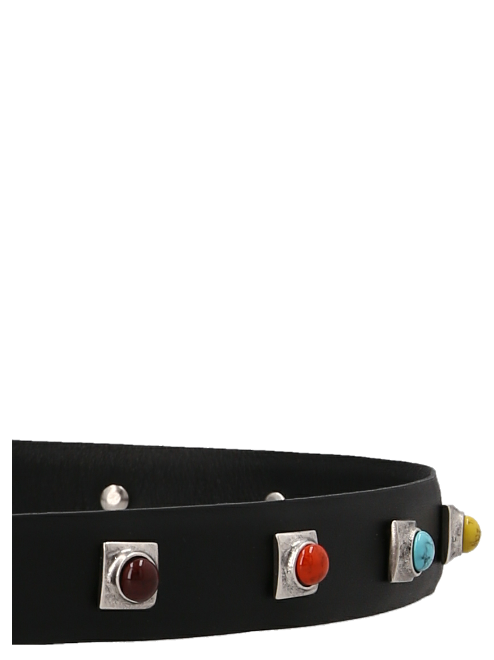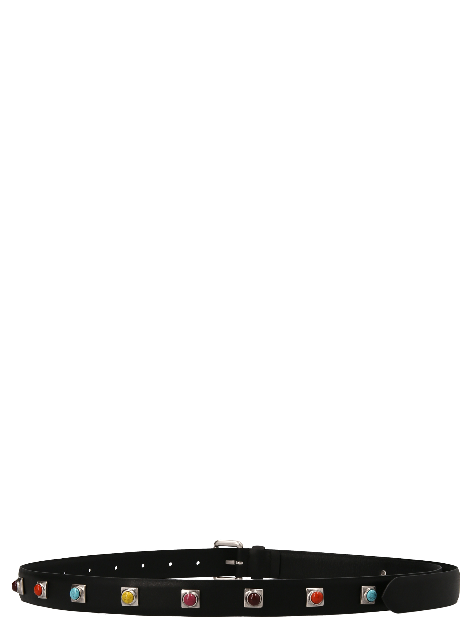 ‘Asta’ leather belt featuring stone and metal dictation appliqués, and metal buckle.
