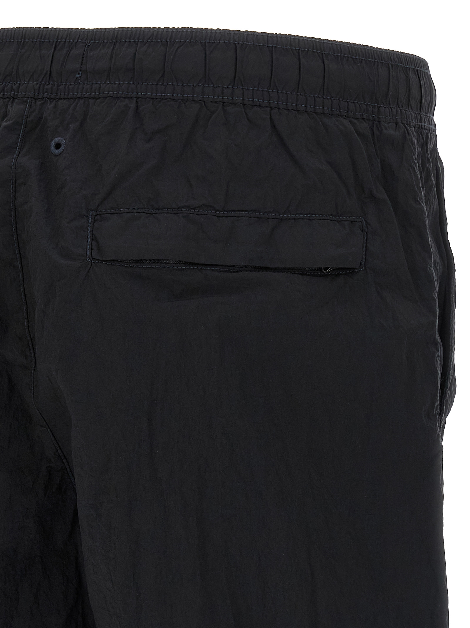 ‘B100004’ Nylon Metal costume garment-dyed with a wrinkled-effect two-color recipe, ‘Compass’ logo patch, drawstring elastic waistband, trompe l’oeil flap, pockets, inner briefs in mesh nylon mesh.