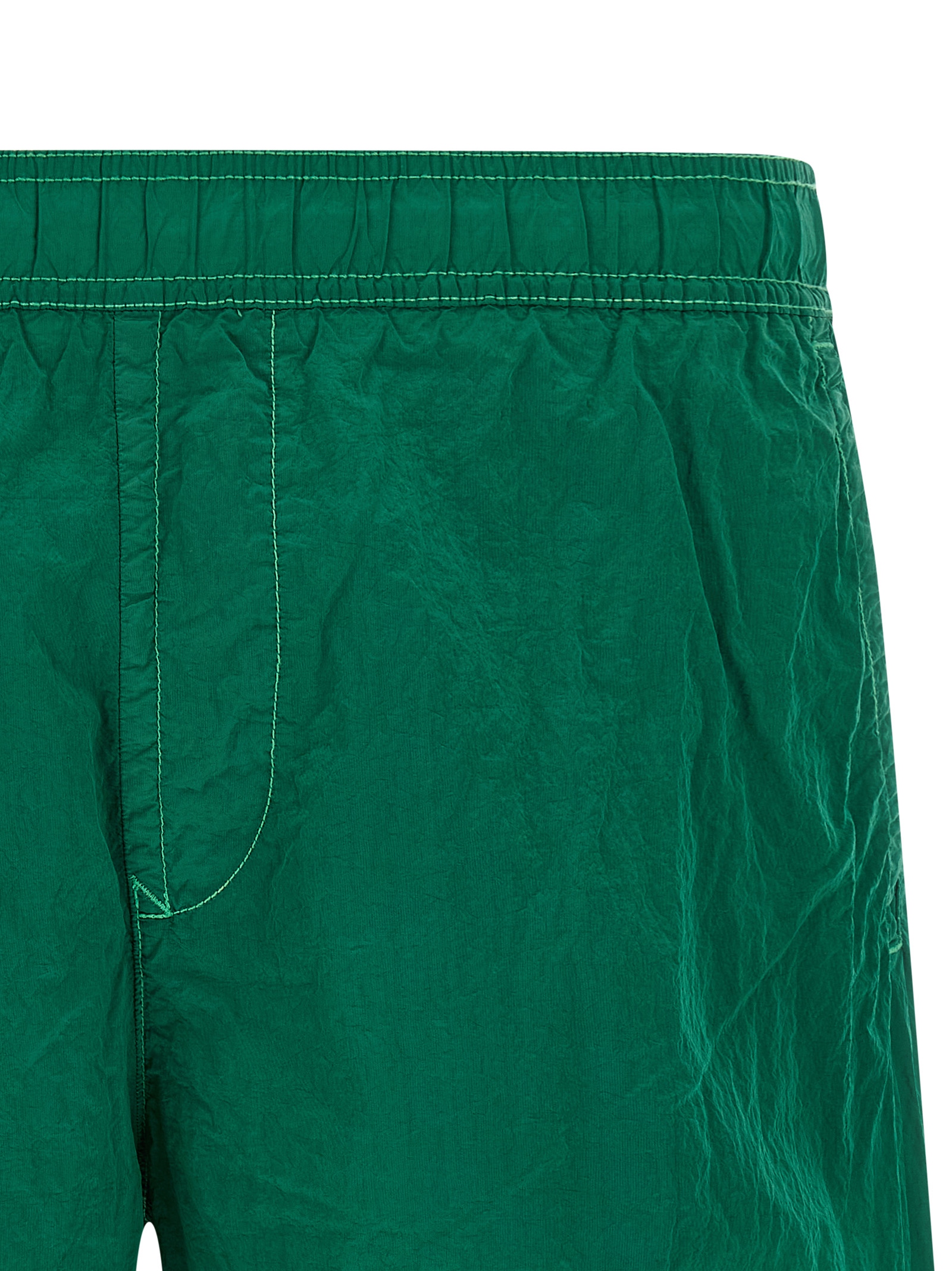 ‘B100004’ swimsuit in garment-dyed Nylon Metal with a wrinkled-effect two-color recipe, ‘Compass’ logo patch, drawstring elastic waistband, trompe l’oeil flap, pockets, inner briefs in mesh nylon mesh.