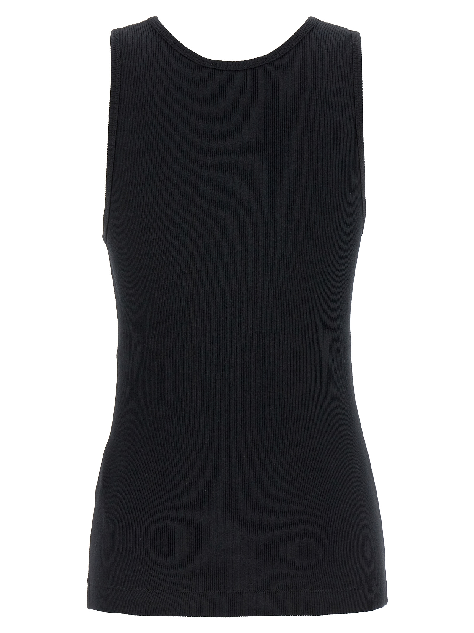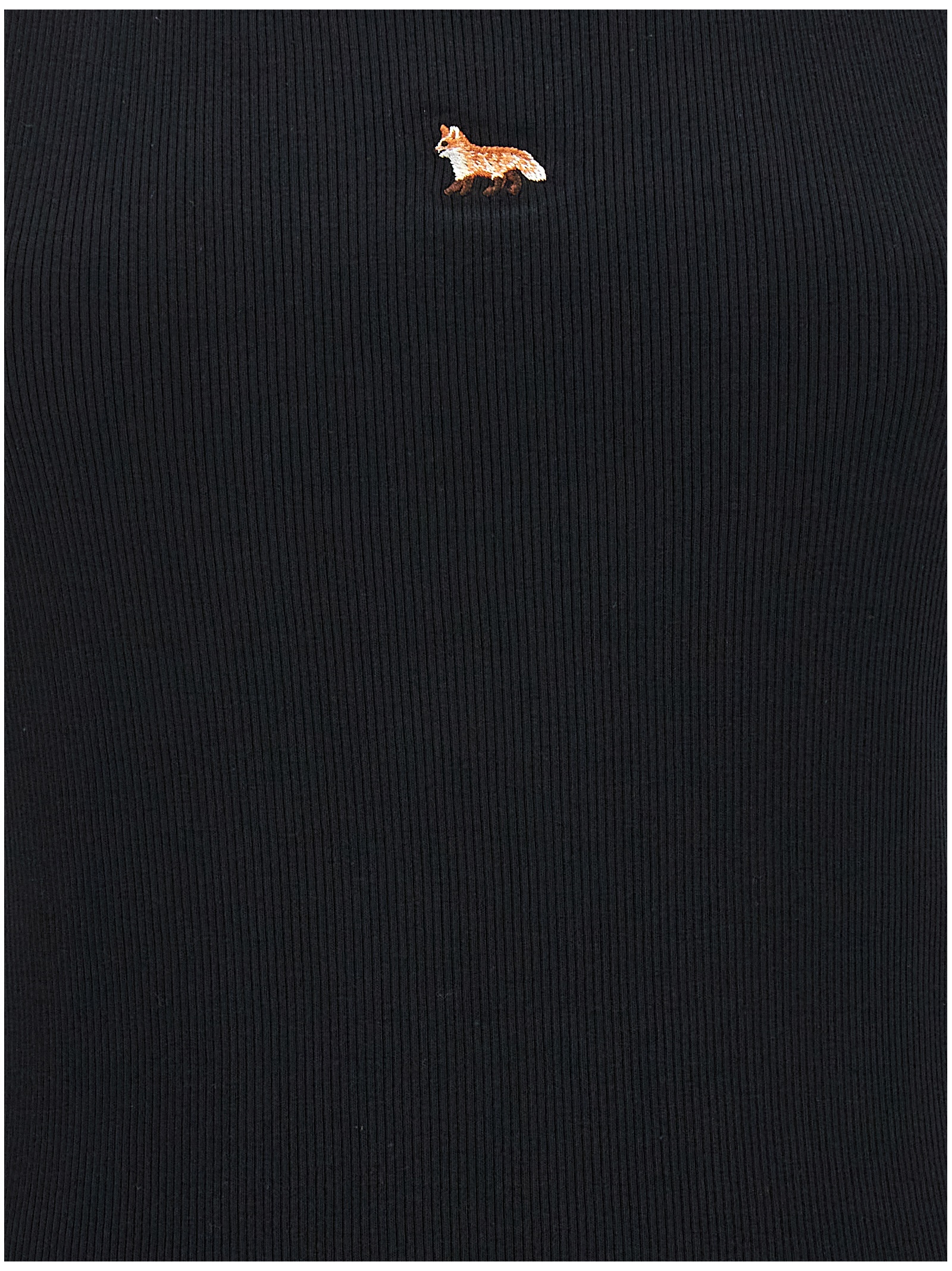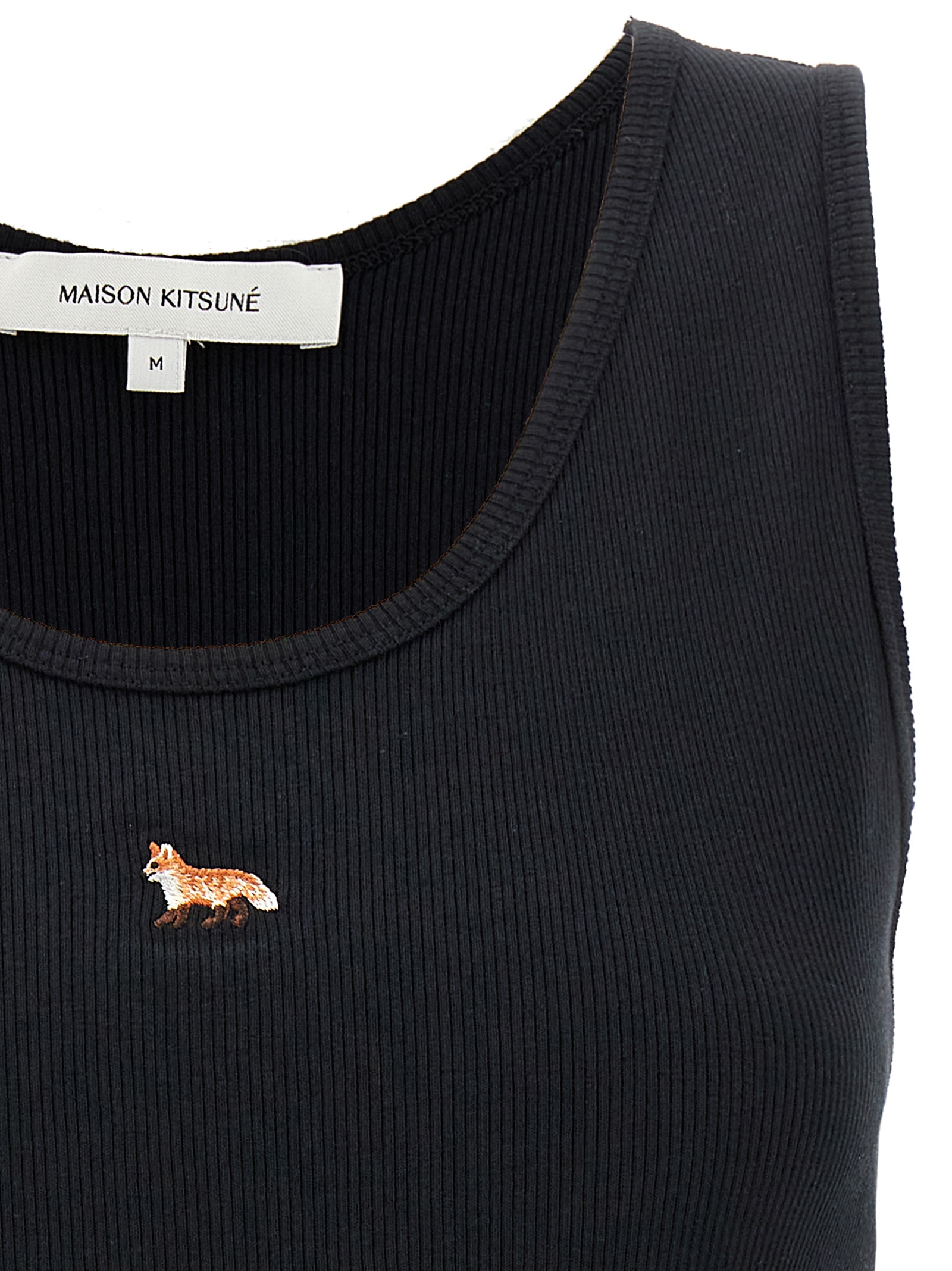 ‘Baby Fox’ ribbed cotton tank top with front logo embroidery and round neckline.