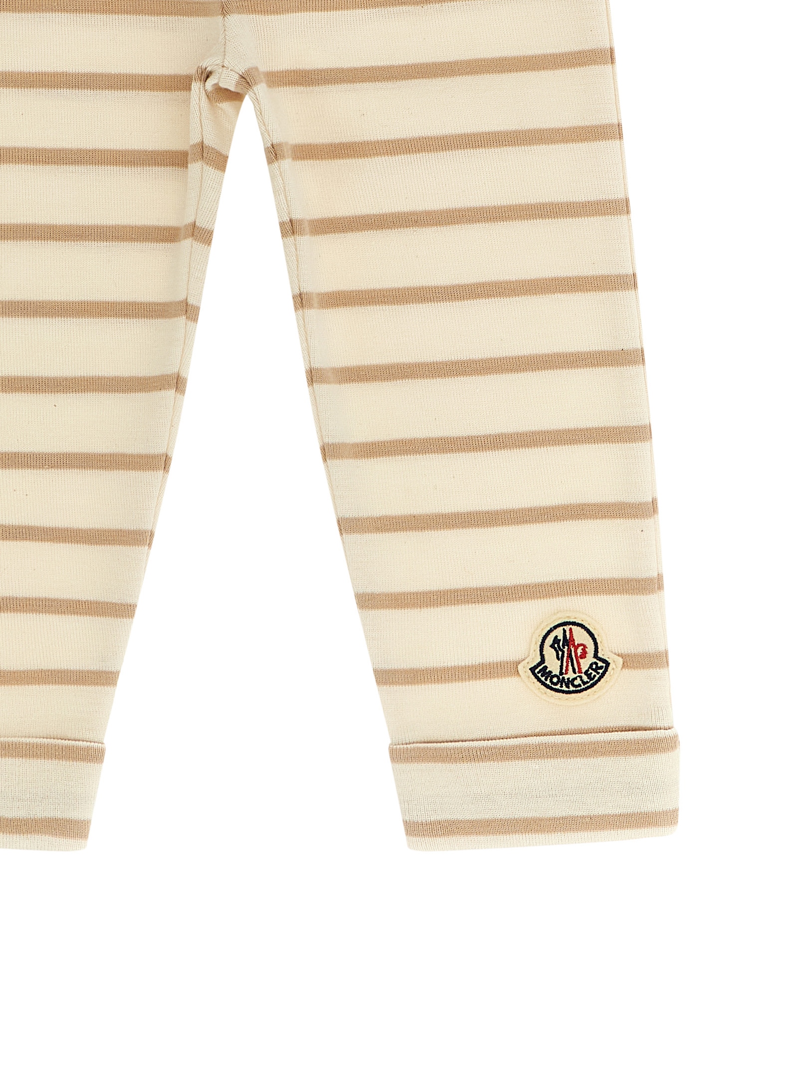 – Striped leggings, elastic waistband, turn-up hem with felt logo patch appliqué;