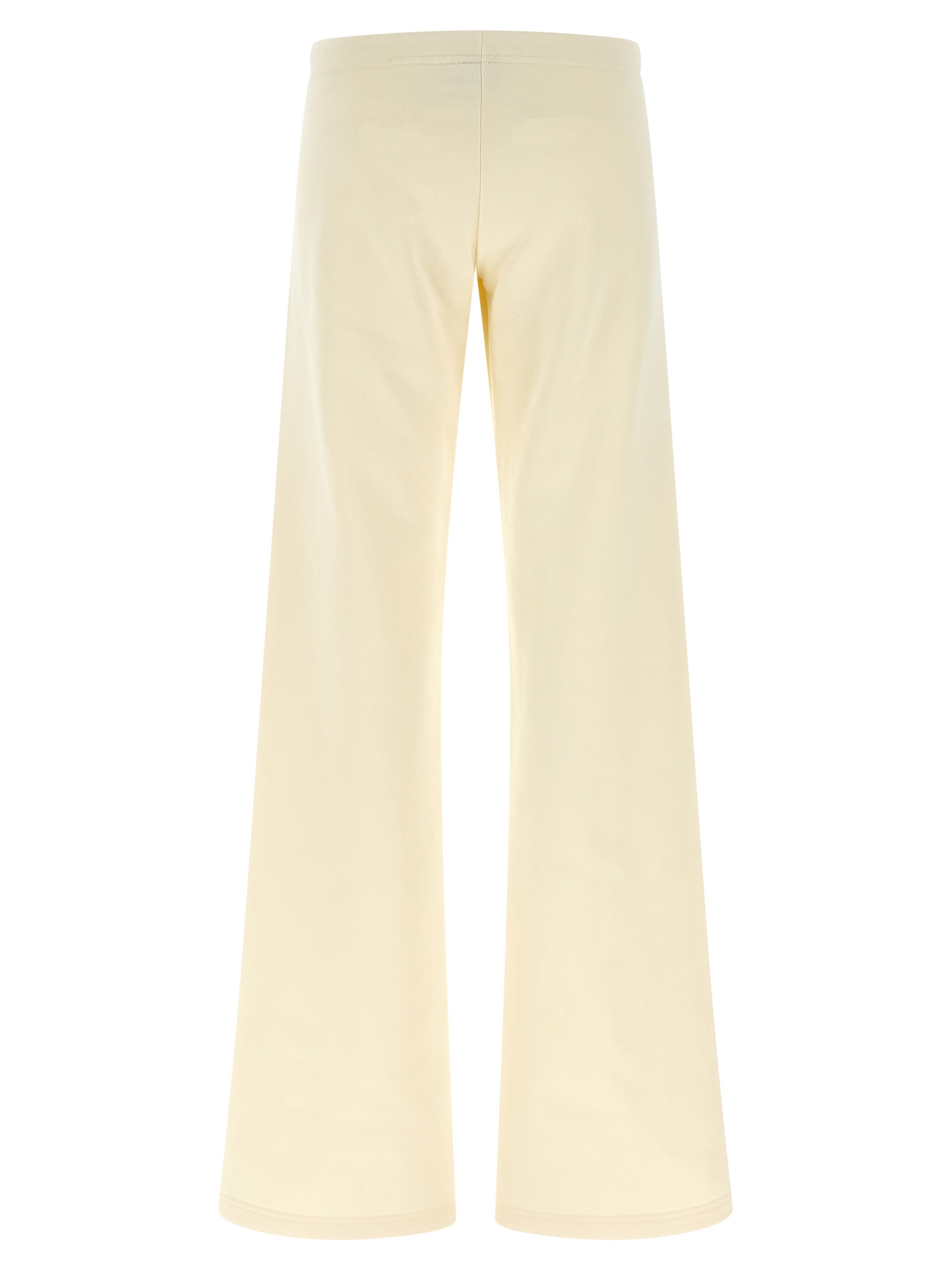 Dry fleece joggers with contrast ‘Balenciaga Back’ embroidery at the front, low waist, flared wide leg, drawstring at the waist.