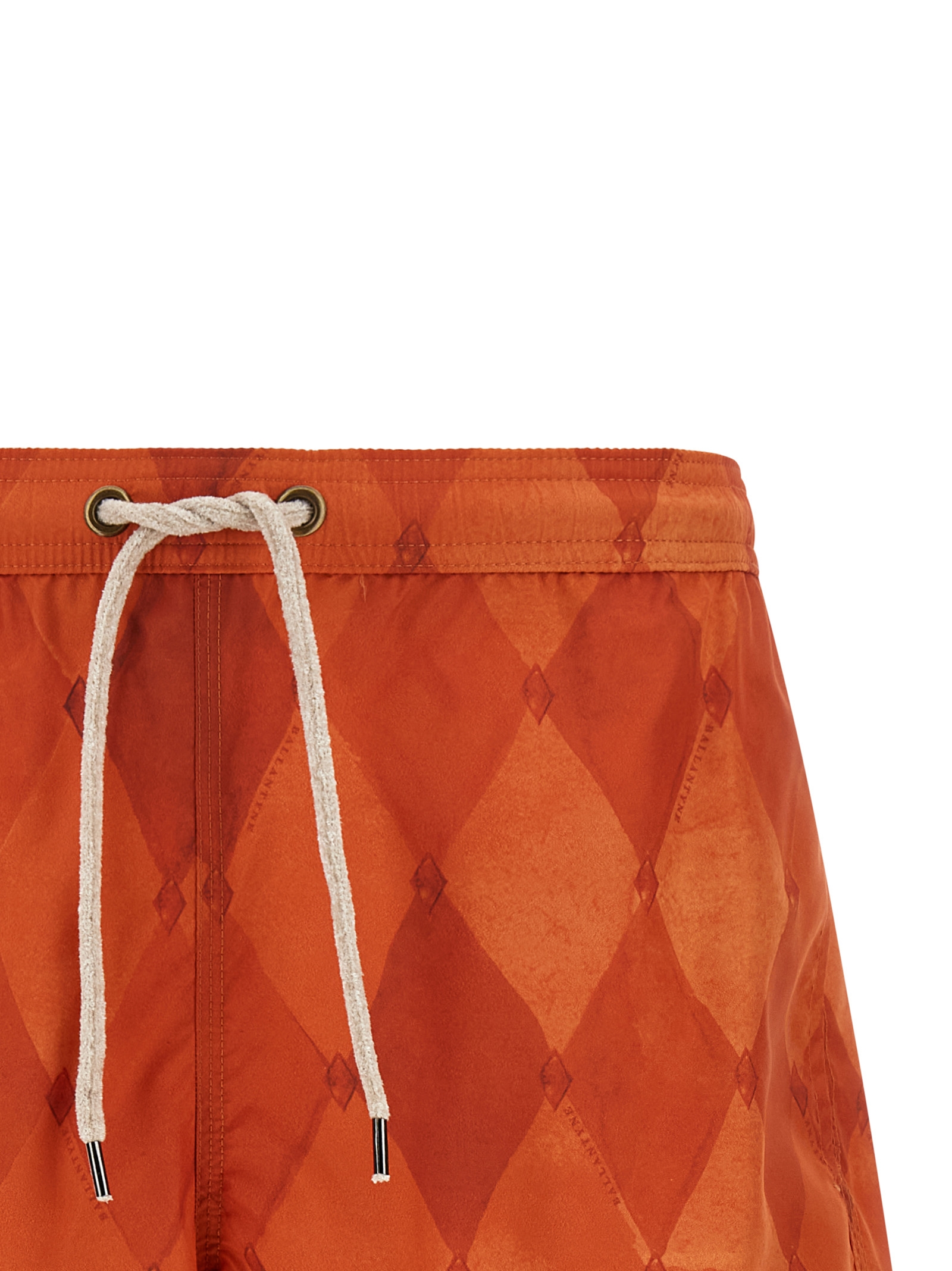 Swimsuit in technical fabric with iconic ‘Ballantyne’ diamond pattern, elastic waistband with a chenille drawstring, pockets, inner mesh briefs.