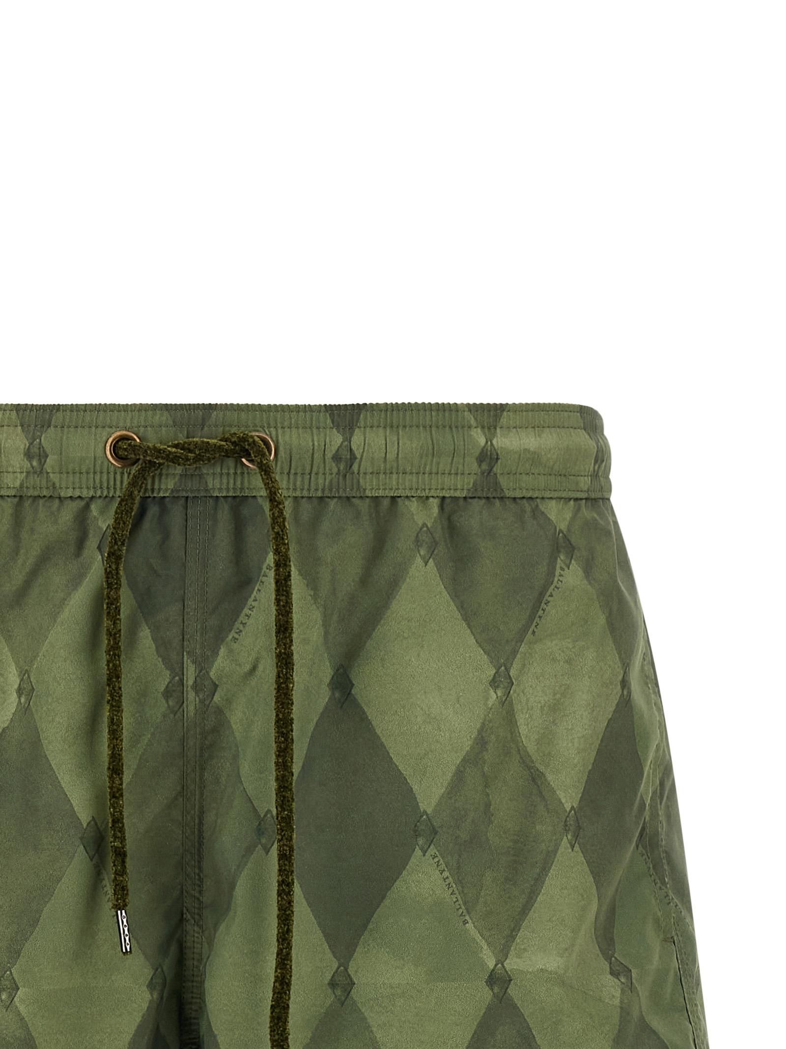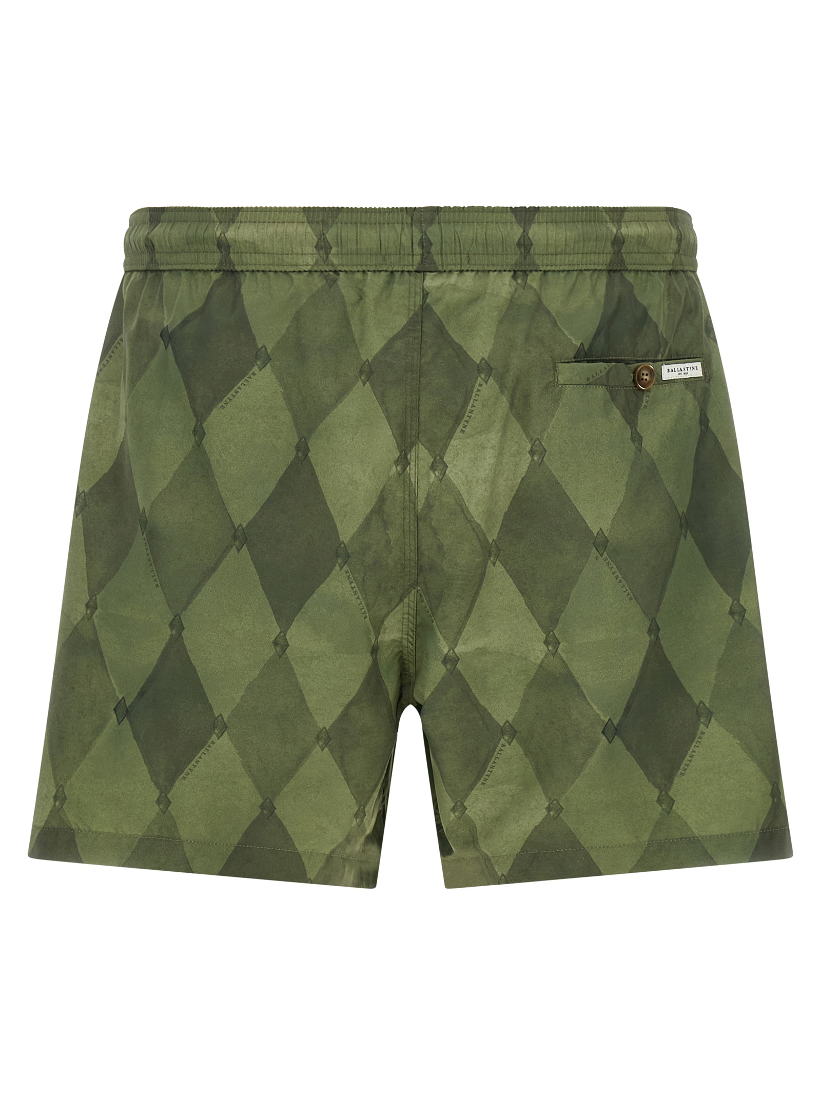 Swimsuit in technical fabric with iconic ‘Ballantyne’ diamond pattern, elastic waistband with a chenille drawstring, pockets, inner mesh briefs.