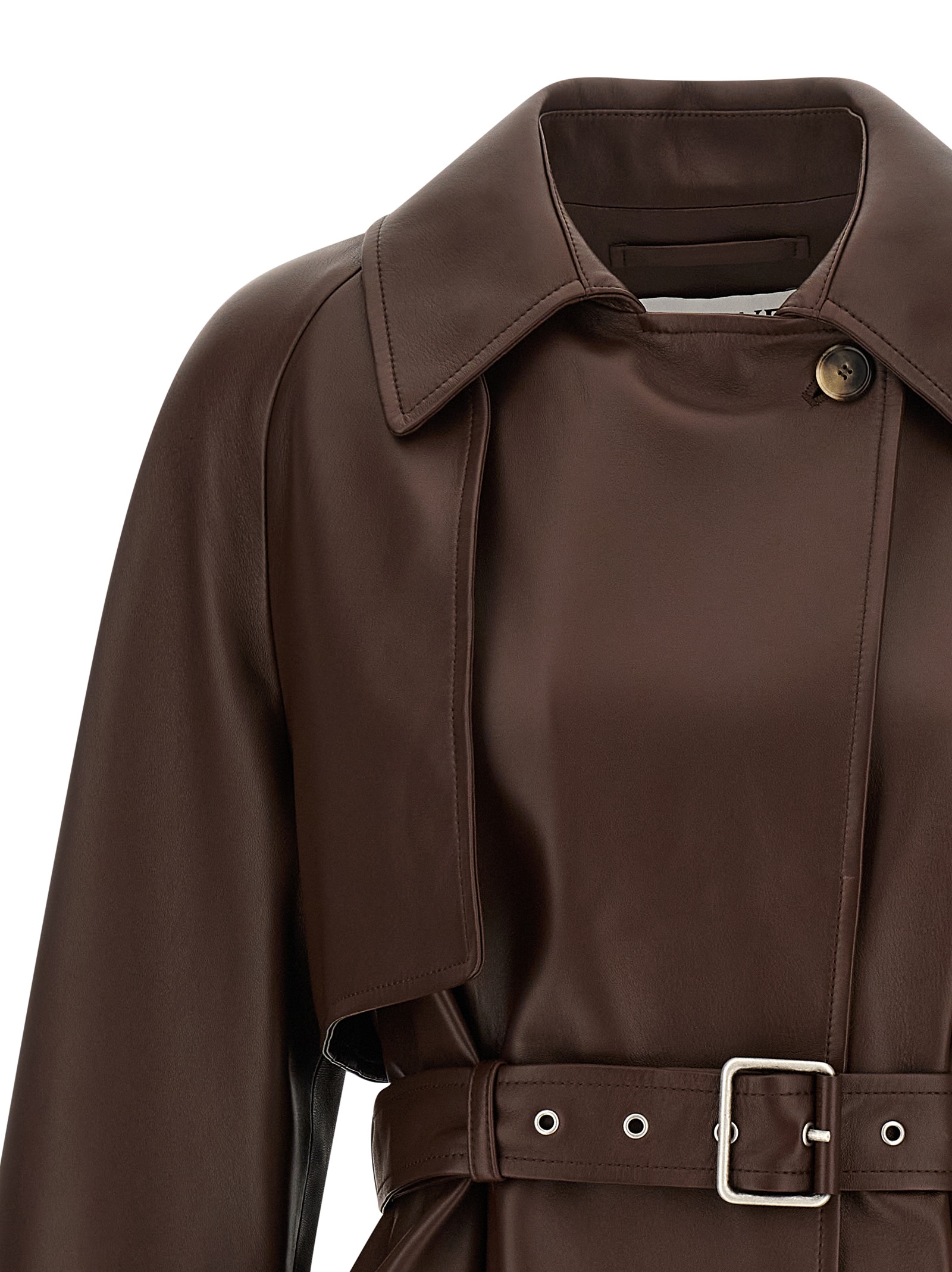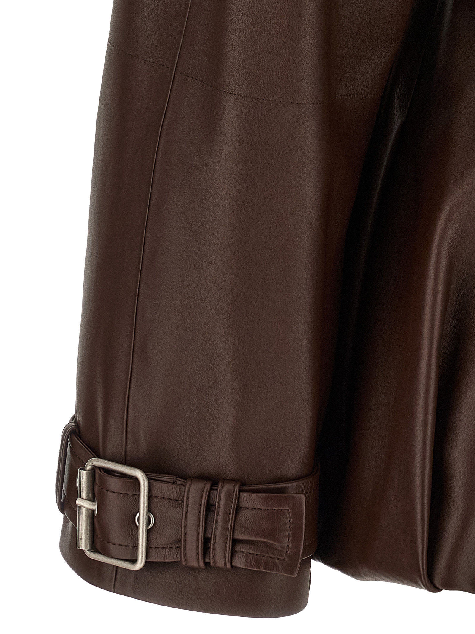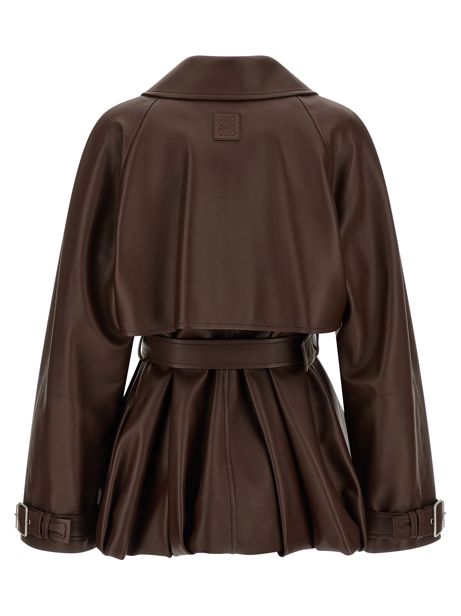 Light lamb nappa jacket with balloon silhouette, tone-on-tone patch with Anagram LOEWE embossed pattern at the back, lapel collar, front button closure, pockets, long sleeves, drawstring at the hem, and removable belt.