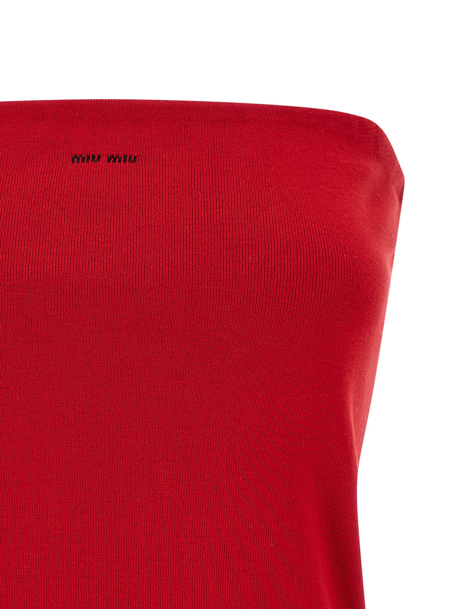 Stretch cotton jersey top with front logo intarsia, off-the-shoulder bandeau model, and raw cut hem.