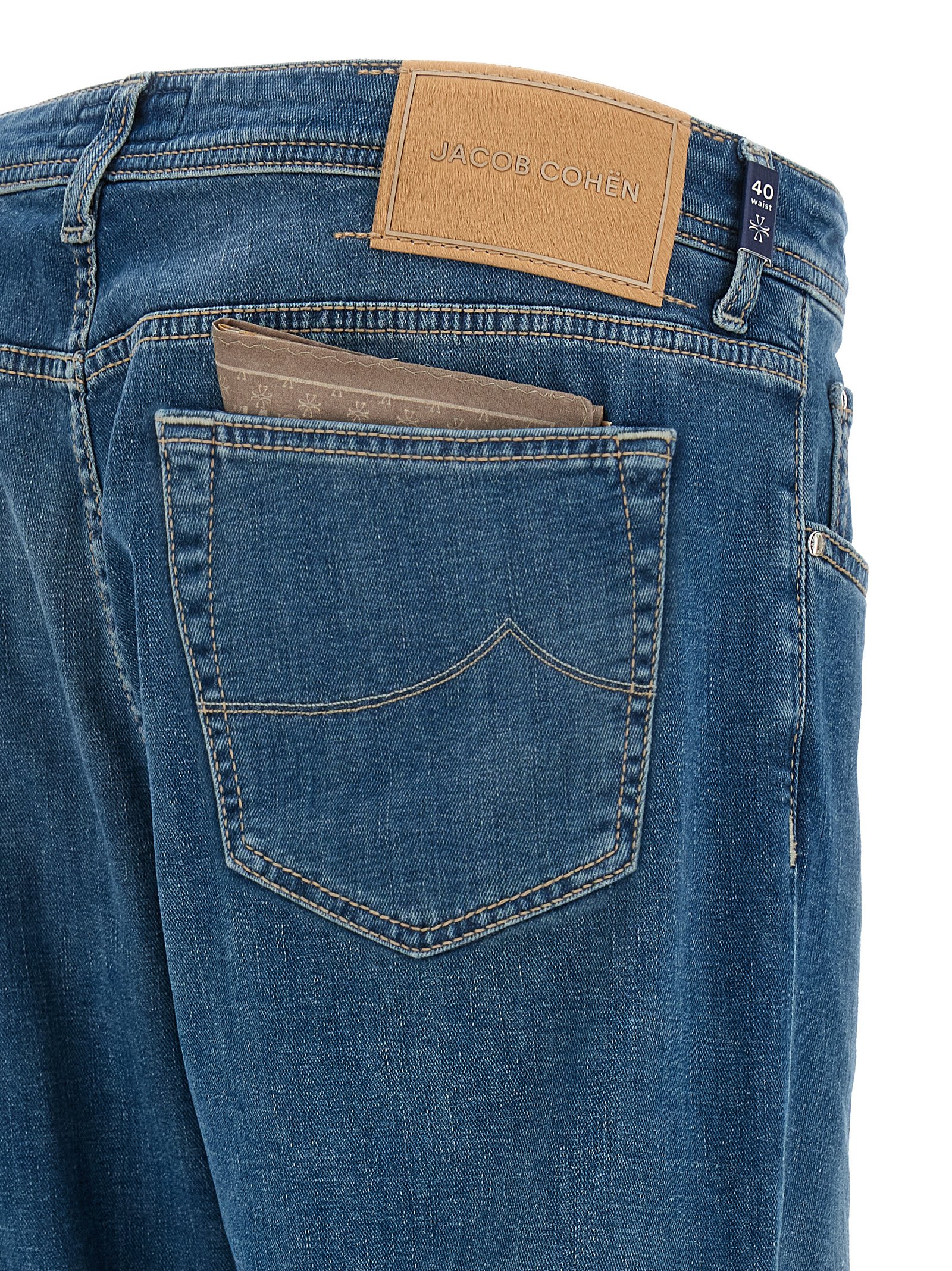 ‘Bard’ stone-washed cotton denim jeans with contrast stitching, mid waist, straight leg, button closure, five pockets with tone-on-tone logo embroidery on the front, back logo tag.