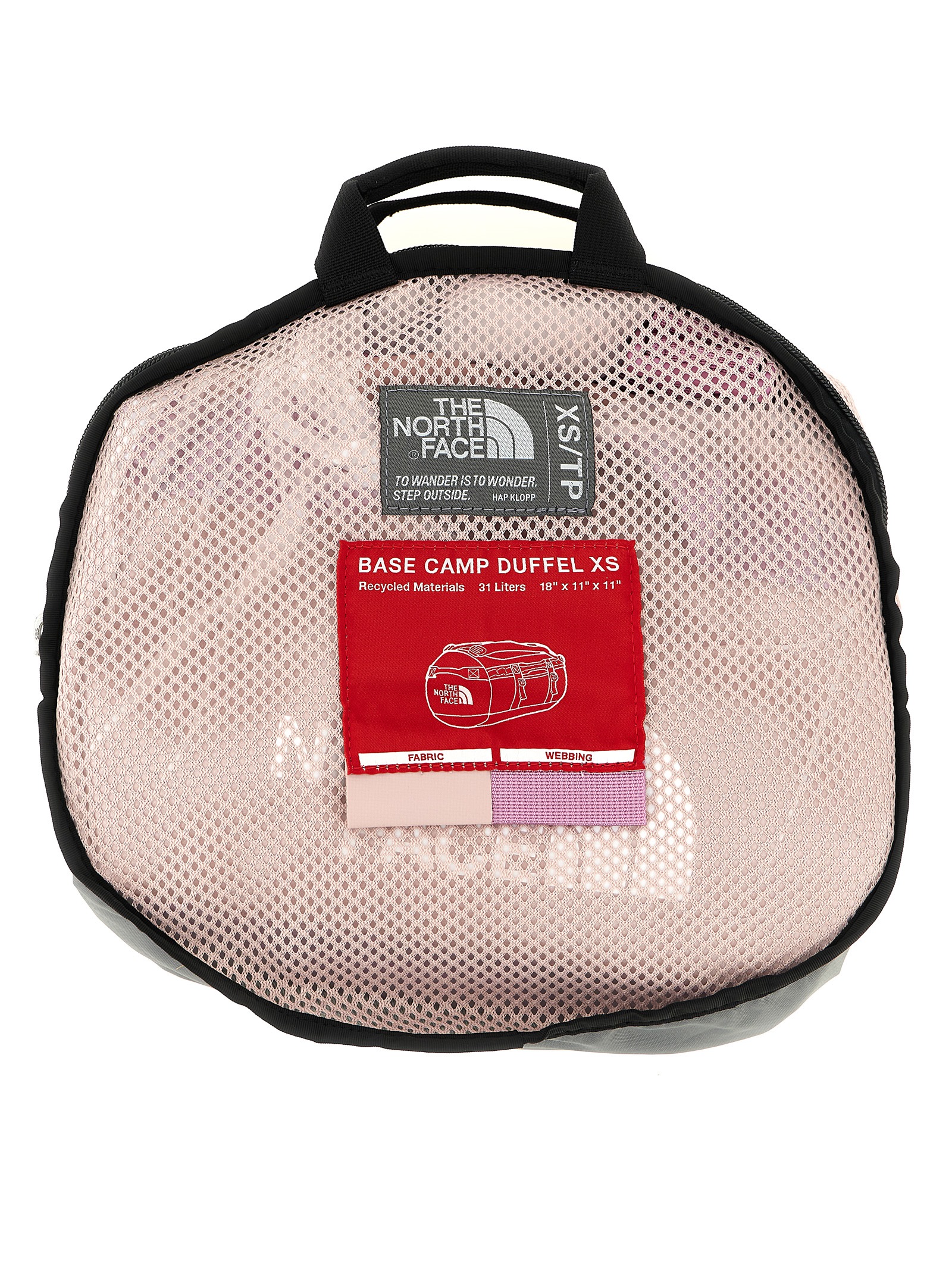 ‘Base Camp Duffel XS’ duffel bag in water-resistant Base Camp technical fabric, zip closure, adjustable and removable shoulder straps, two padded side handles, D-opening with zip and flap, main compartment with mesh pocket closed by zip and pocket on the end, four compression straps, transparent document pocket on the top. Mesh bag to carry or store your duffel bag.