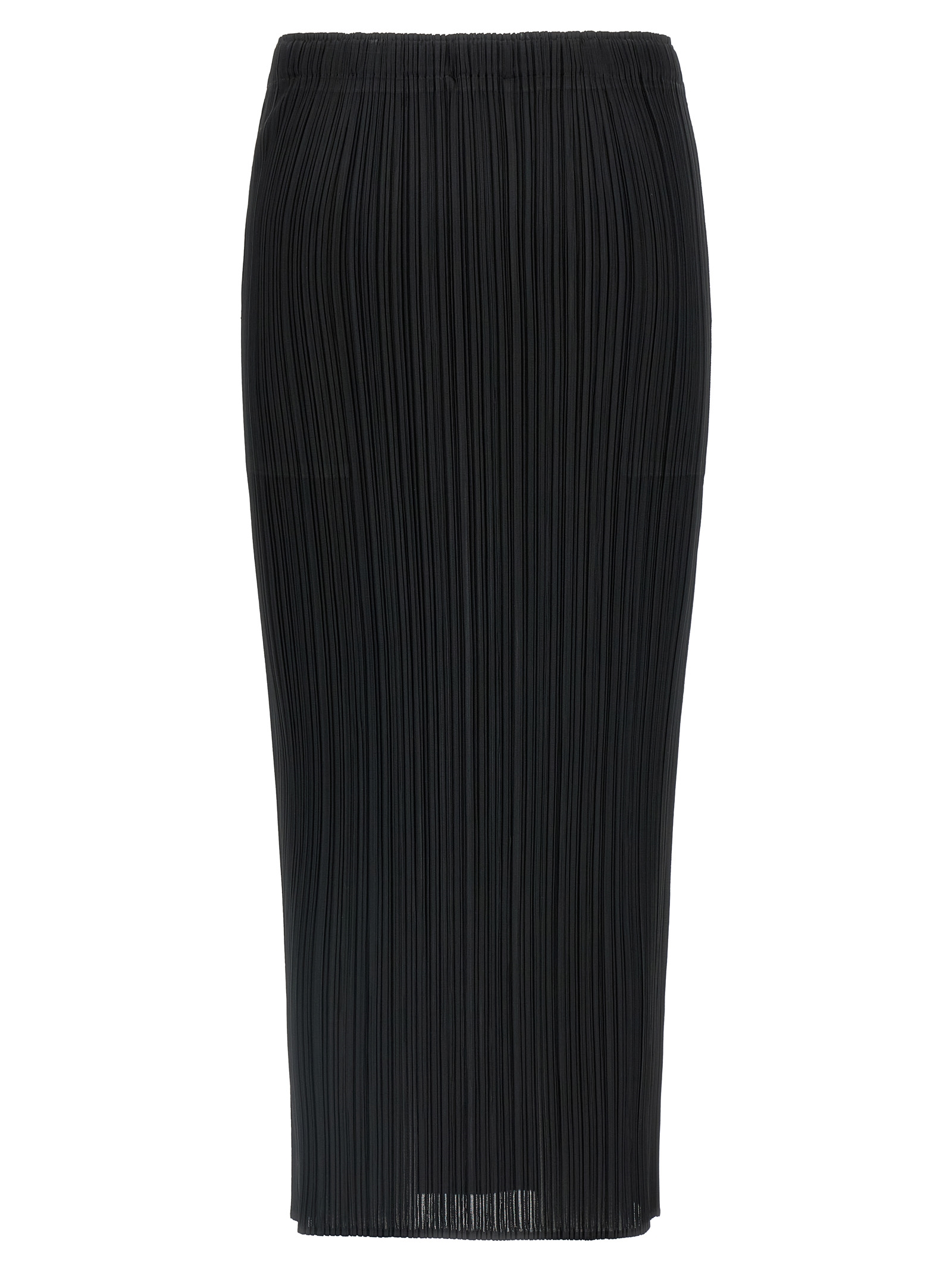 ‘Basics’ midi skirt in pleated fabric, longuette model, elastic waistband, pockets.