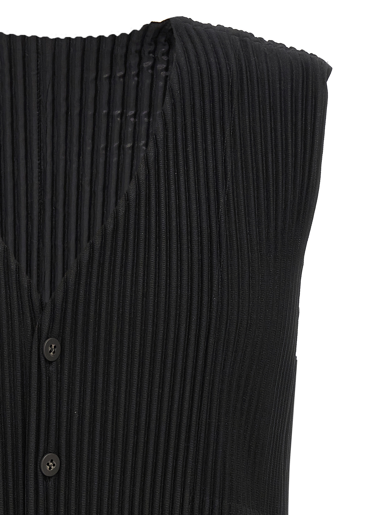 ‘Basics’ vest in pleated fabric with V-neck, front button closure.