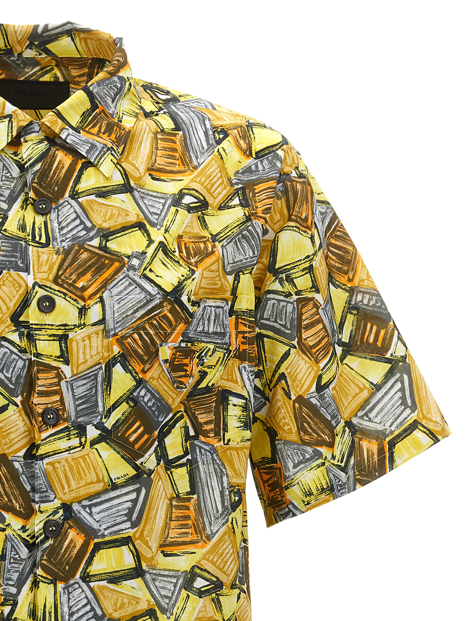 ‘Batista Triangl’ poplin cotton shirt with all-over logo print, breast pocket, button closure, short sleeves, side splits.