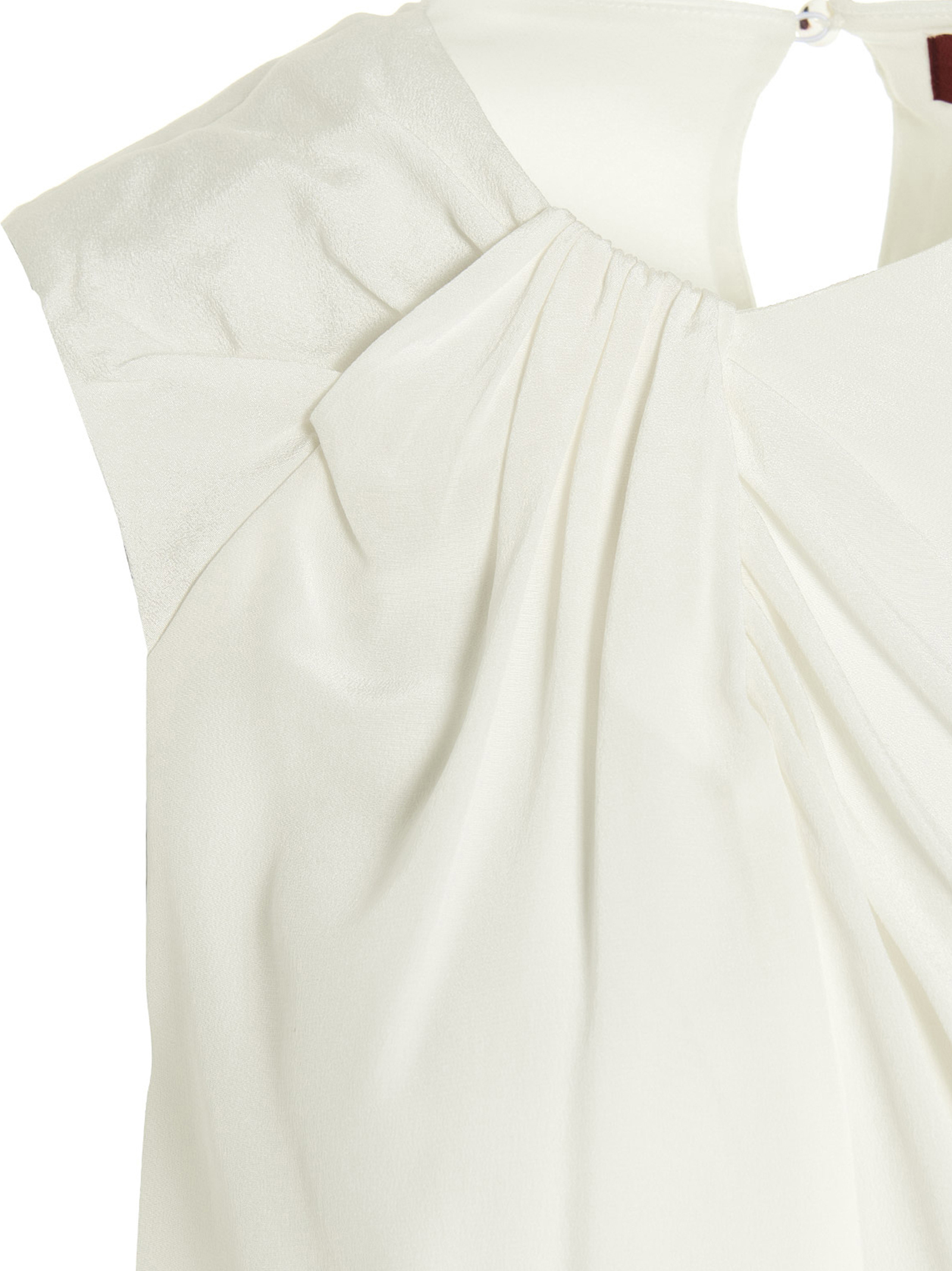 Cashmere’ crêpe de chine silk top with crewneck, asymmetric draping and butterfly sleeves.