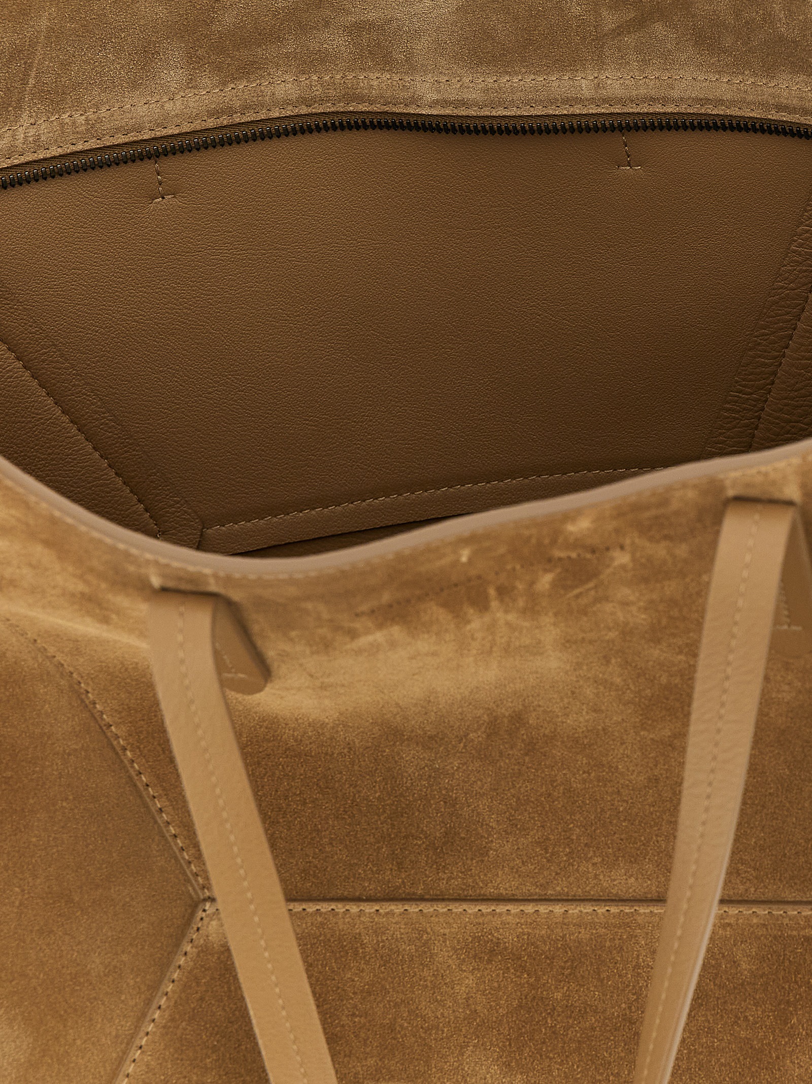 Maxi ‘BC Duo’ suede shoulder bag with panel construction, double fixed handle, front embossed logo, top zip closure, side Monile details with internal snap hook to change capacity, removable clutch bag.