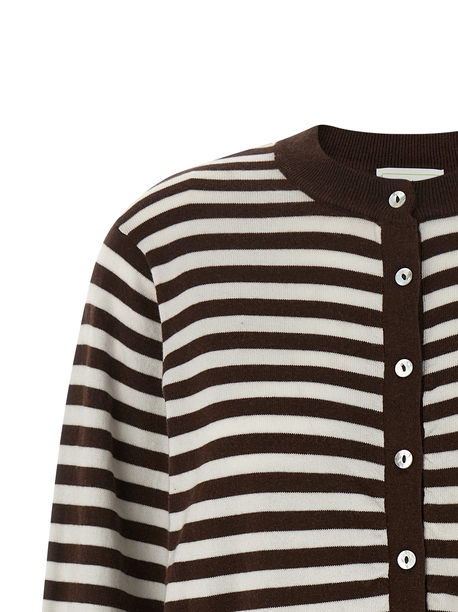 ‘Be Motivated’ striped cotton and cashmere blend cardigan, crew neck, front mother-of-pearl button closure, long sleeves with cuffs and dropped shoulders, band on the hem.